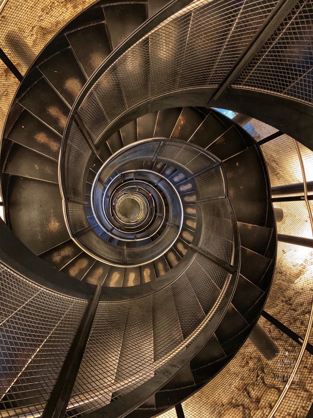 เมื่อกลับเข้ามาในเมือง เป็นเวลา4 โมง จึงเปิดข้อมูลดูว่ามีอะไรที่ใช้ Innsbruck card แล้วยังเข้าได้ในช่วงเวลานี้ หอประจำเมือง Stadtturm Innsbruck ซึ่งเปิดให้ขึ้นถึง5 โมงเย็นจึงเป็นคำตอบ บันไดเวียนเพื่อขึ้นไปด้านบนออกแบบได้ ว้าว ใช้ได้ทีเดียว นักท่องเที่ยวที่เดินเวียนขึ้นและเวียนลงจะไม่ชนกัน