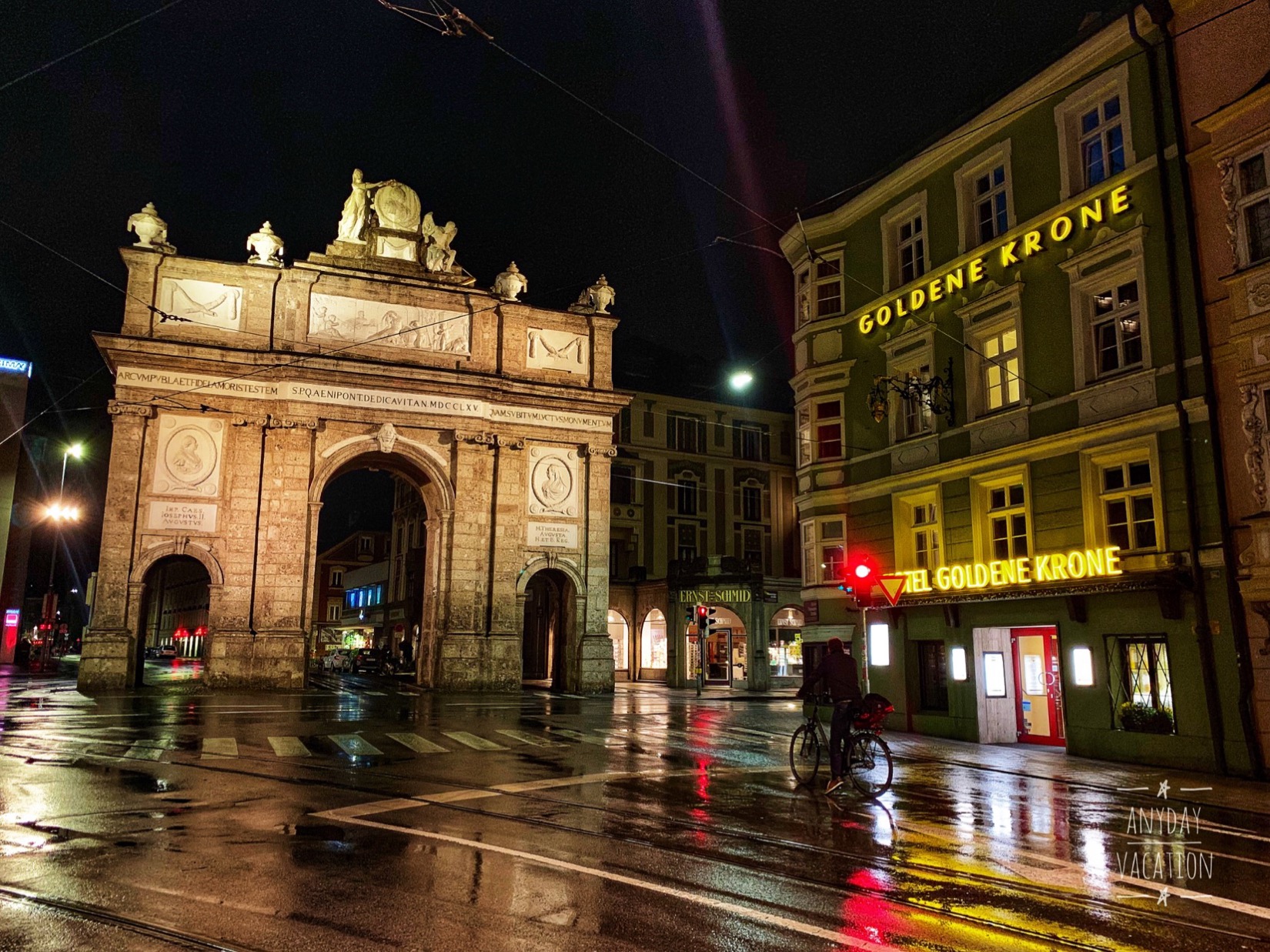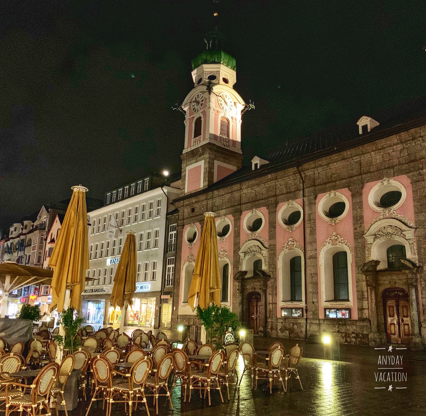 เมื่อซึมซับกับบรรยากาศของเมืองเล็กๆที่น่ารักแห่งนี้เรียบร้อยจึงร่ำลา Mittenwald ไป แล้วออกเดินทางต่อไปยังInnsbruck ซึ่งอยู่ห่างออกไปประมาณ 45 นาที Innsbruck เป็นอีกเมืองนึงที่เป็นลักษณะที่ราบซ่อนตัวอยู่ในเทือกเขาAlps โดยยอดเขาที่มีชื่อเสียงและตั้งอยู่ติดเมืองก็คือ Nordkette ซึ่งเป็นอีกหนึ่งสถานที่สำคัญของเมืองนี้ที่ไม่ควรพลาด ติดอยู่ที่อากาศใน 2 วันนี้ไม่ค่อยเป็นใจเสียเลย