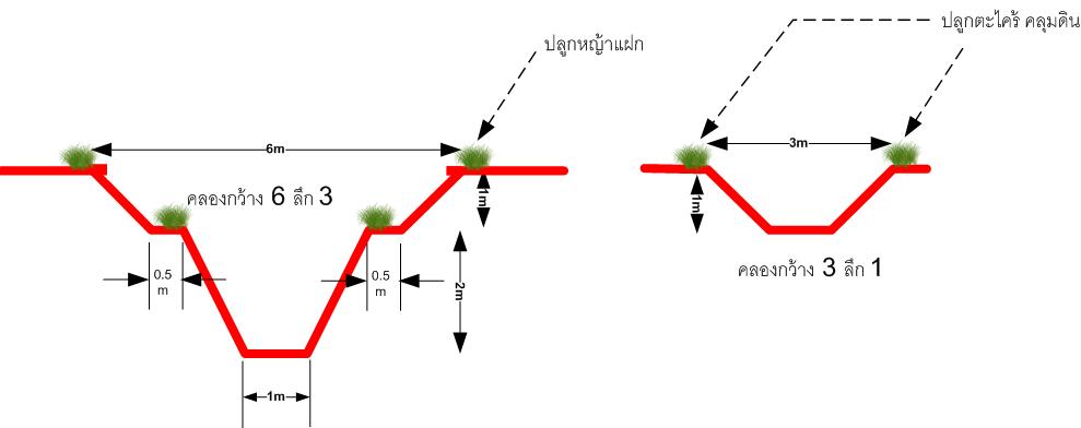 ตั้งใจจะขุดคลองเพื่อเก็บน้ำใช้การเกษตร ลึกซัก 1 เมตร คลองนี้ควรกว้างกี่เมตร ต้องมีตะพักไหมครับ