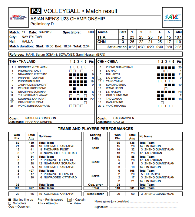 สถิติ U23 นัดไทย-จีน // เติร์กท้อปสกอร์ 22 แต้ม, มอส 19