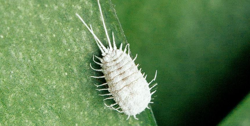 จุดกำเนิดของเพลี้ย ก็คือแมลงเล็ก ๆ ที่มีชื่อทางวิทยาศาสตร์ ว่า Maconellicoccus hirsutus (ภาพนี้)