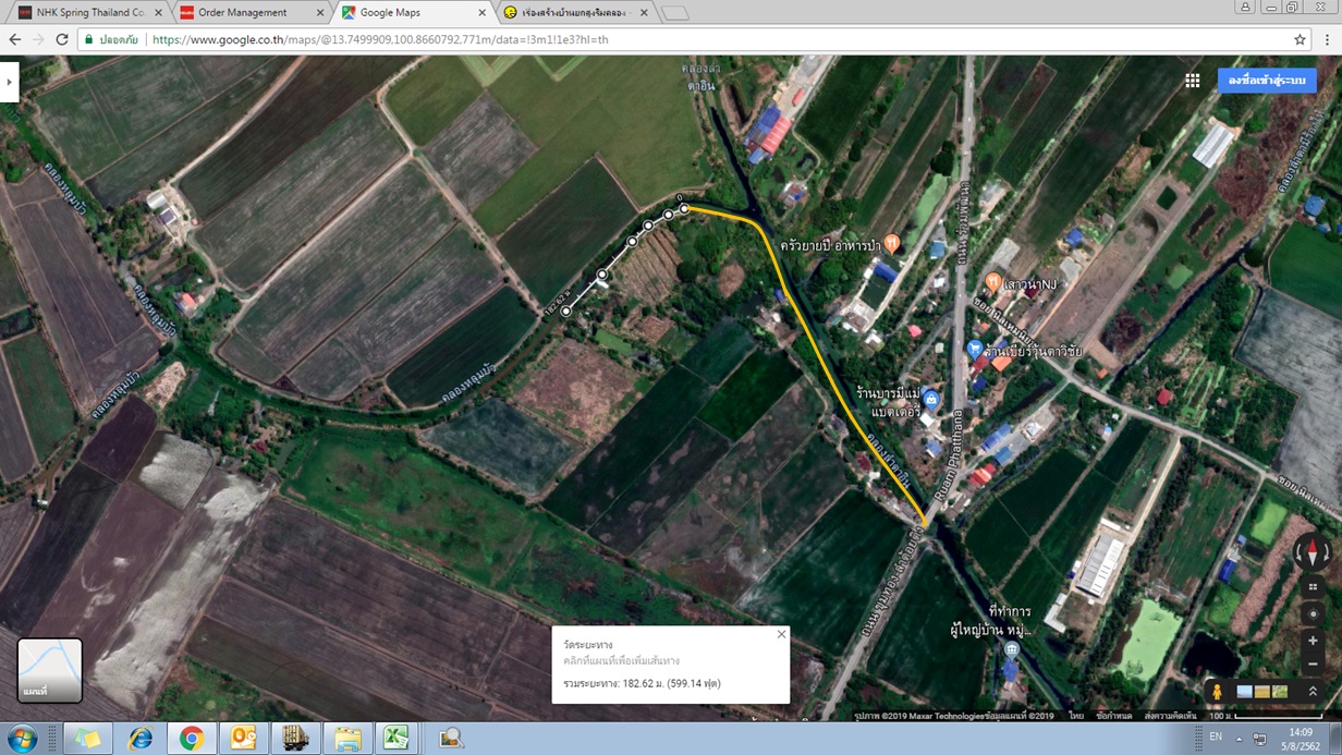 ปล.ใช้กูเกิ้ลวัดระยะประมาณ 180 เมตร ที่อยู่ อยู่ในเขตลาดกระบัง กทม.