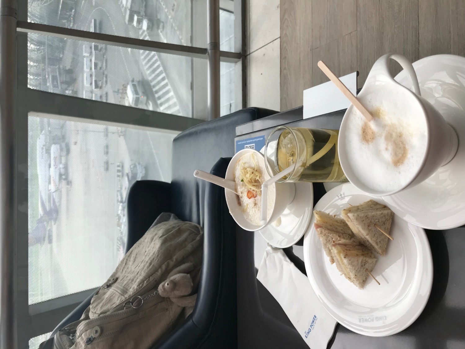 เนื่องจาก flight นี้ เป็นการบินในช่วงเช้าเราจึงต้องมา Drop กระเป๋าก่อน (เนื่องจากได้ทำการ check-in online มาแล้ว) เวลาประมาณ 6.30 น. จากนั้นก็ทำการแสกน passport แบบอัตโนมัติ ในขั้นตอนการตรวจคนเข้าเมือง ขาออกนอกประเทศ ซึ่งใช้เวลาไม่นาน ประมาณ 15 นาที เวลาเกือบ 7 โมงเช้า ท้องเริ่มร้องหาอาหารเช้า จึงเดินเข้า เล้านจ์ ของ King Power เพื่อหาข้าวต้มรองท้องซักหน่อย ก่อนจะไปจัดเต็มกับการบริการบนเครื่อง