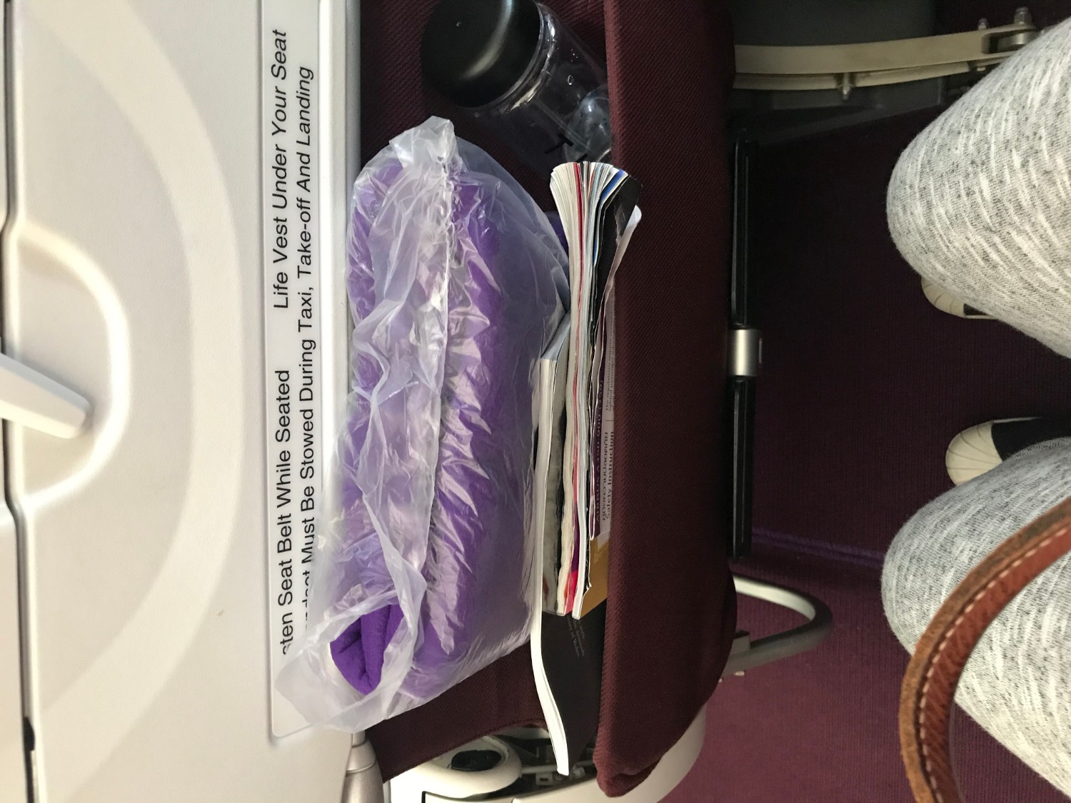 ความกว้างของที่นั่งกว้างเลยค่ะ มีผ้าห่มและหูฟังเตรียมไว้ให้ใช้ในระหว่างการเดินทาง แต่ไม่มี amenity kits ให้นะคะ Lotion หรือ Lip balm ต่าง ๆ คงต้องเตรียมกันมาเอง ส่วนแปรงสีฟัน กับที่ปิดตา ต้องขอจากพนักงานต้อนรับเองค่ะ ซึ่งอาจจะมีให้ไม่ครบทุกคนนะคะ แนะนำว่าขึ้นเครื่องปุ๊บให้ขอไว้เลยค่ะ และที่นั่งก็มีที่วางพักเท้าให้เอาลงมาวางระหว่างเดินทางด้วยนะคะ (อย่าลืมใช้กันนะคะ แก้เมื่อยได้ดีทีเดียว)