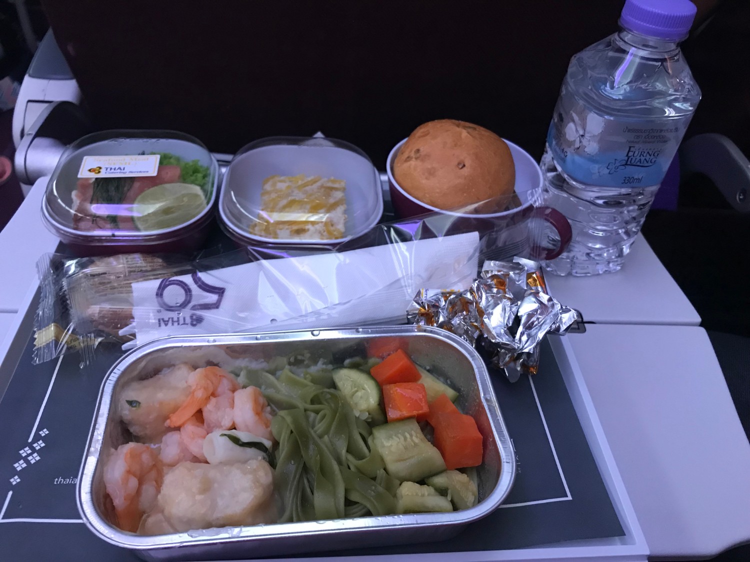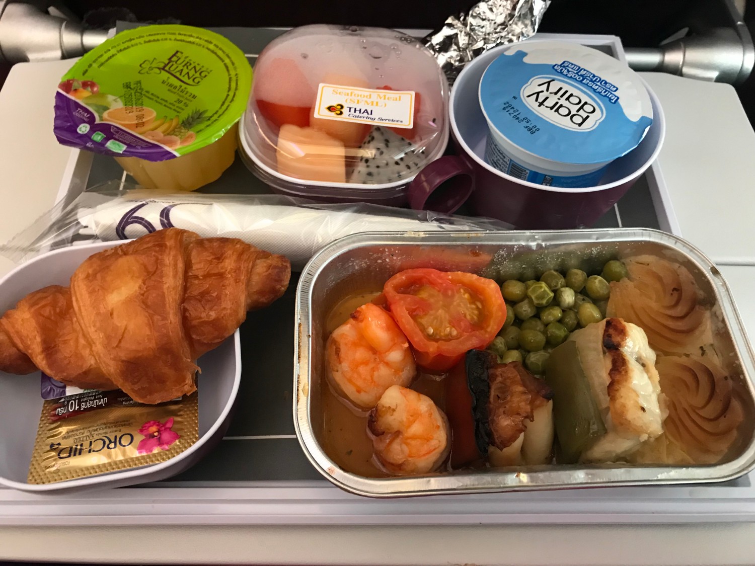 เอาละค่ะหลายคนคงจะหิวแล้ว เรามาเริ่มที่อาหารมื้อแรกของ flight นี้เลยค่ะ แต่อาหารที่มาเสริฟนั้น จะเป็น Seafood Meal ทั้งสองมื้อนะคะ เนื่องจากเราได้เลือกไว้ล่วงหน้าผ่านการจัดการ Booking ก่อนที่จะเดินทางค่ะ