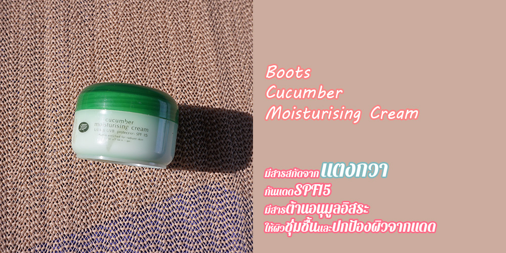 จริงๆก็ซื้อไว้นานแล้วล่ะ เป็นครีมทาหน้าแตงกวาที่กลิ่นแตงกวาชัดเจนมากๆ เปิดมาอาจมีผงะเล็กน้อยถึงปานกลาง ครีมตัวนี้เขาใช้ได้ทั้งกลางวันกลางคืน แล้วก็มีส่วนผสมของกันแดดมาให้เล็กน้อยด้วย แต่จากคหสต.ของเราแล้ว คิดว่าควรใช้ตอนกลางคืนเพราะเนื้อครีมข้นและหนักมาก ใช้แล้วทิ้งความมันที่ผิวด้วย ต้องรอสักพักถึงซึมหมด ถ้าใช้กลางวันเยิ้มแน่ๆ แต่เรื่องความชุ่มชื้นนี่ดีเลยนะ ชุ่มมากกก หน้านุ่มไปเลย ถ้าผิวแห้งและไม่ได้ต้องการบำรุงอะไรมากก็ต้องตัวนี้แหละ