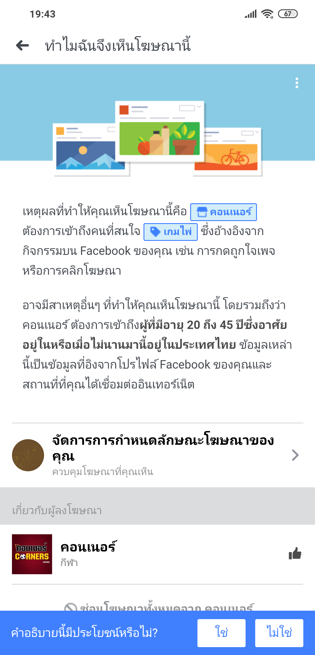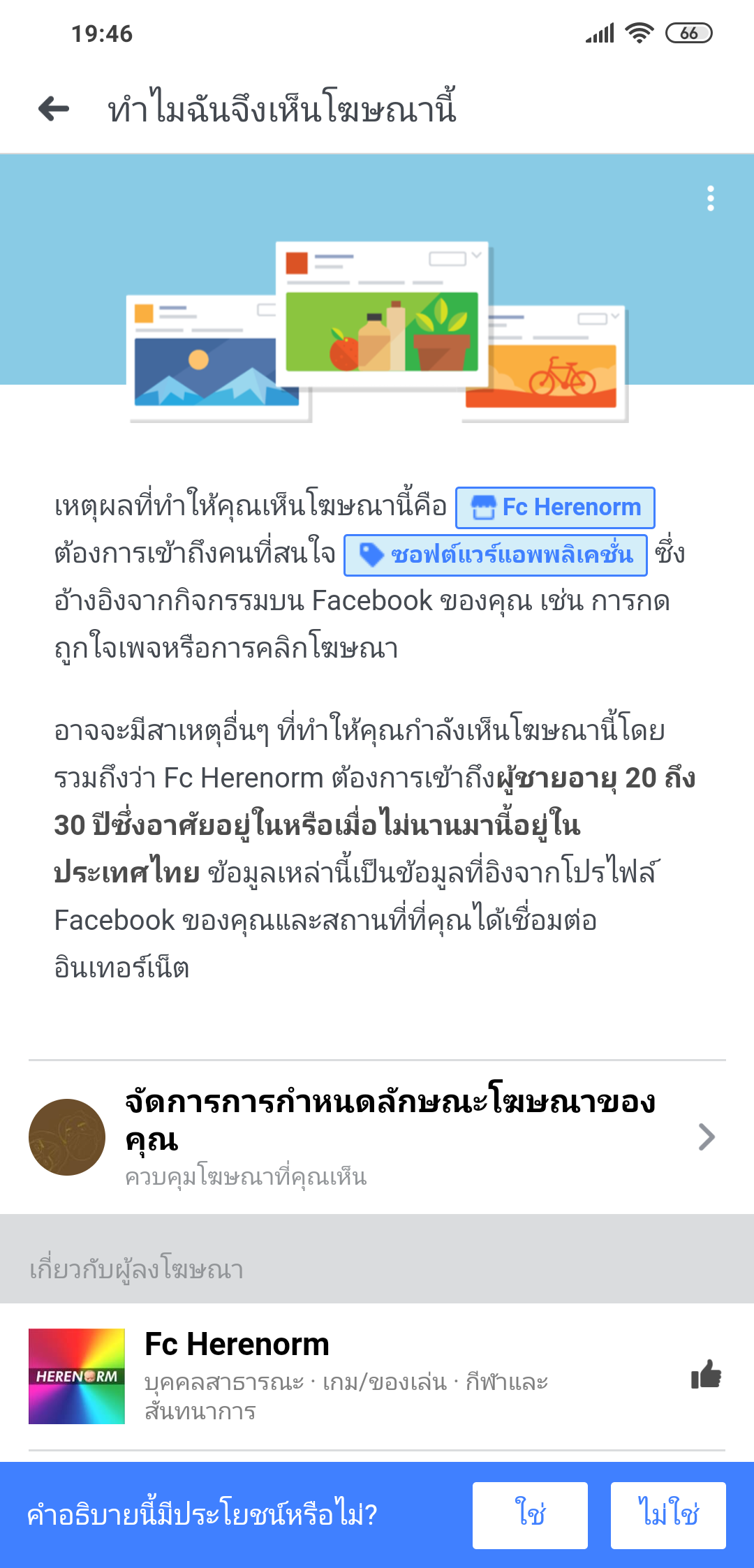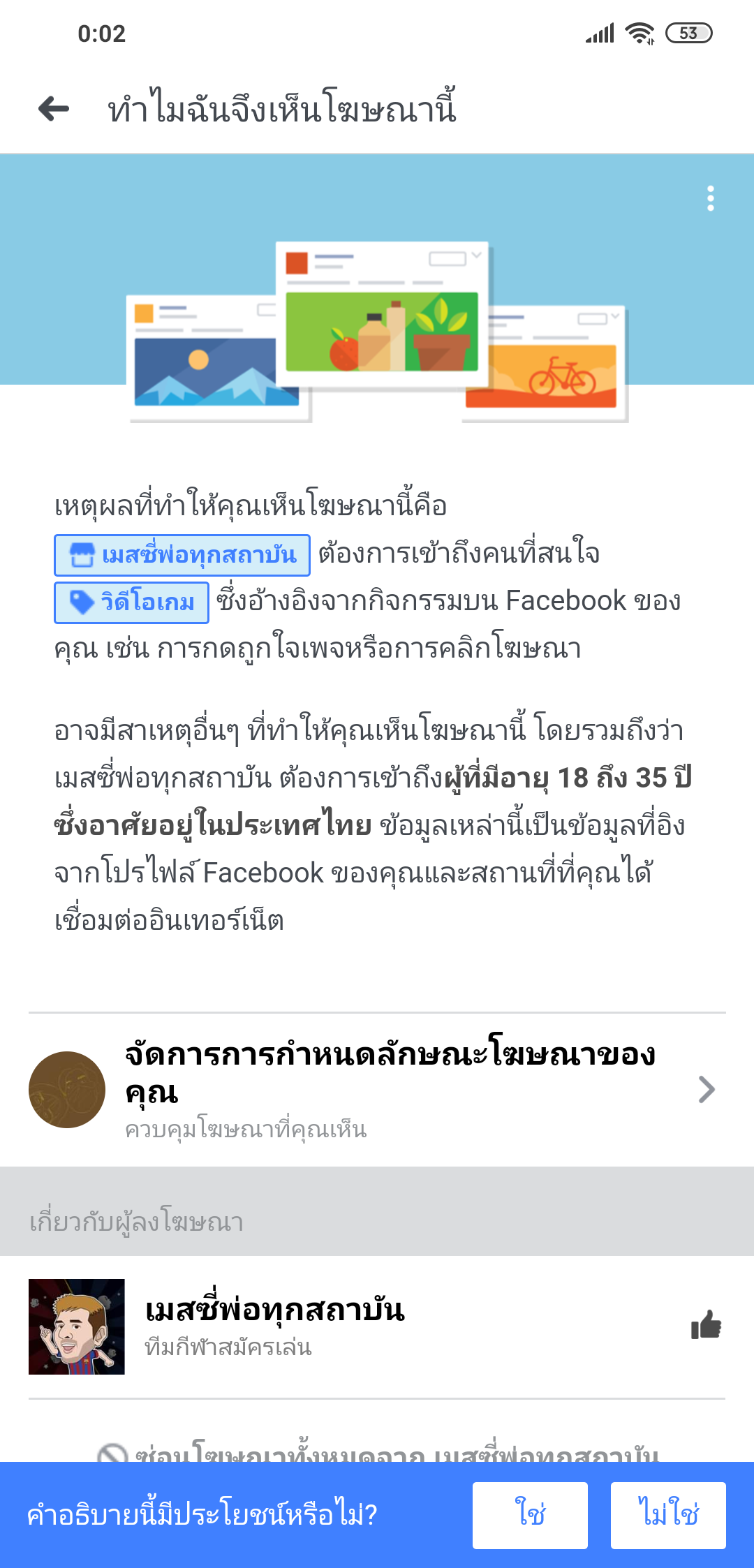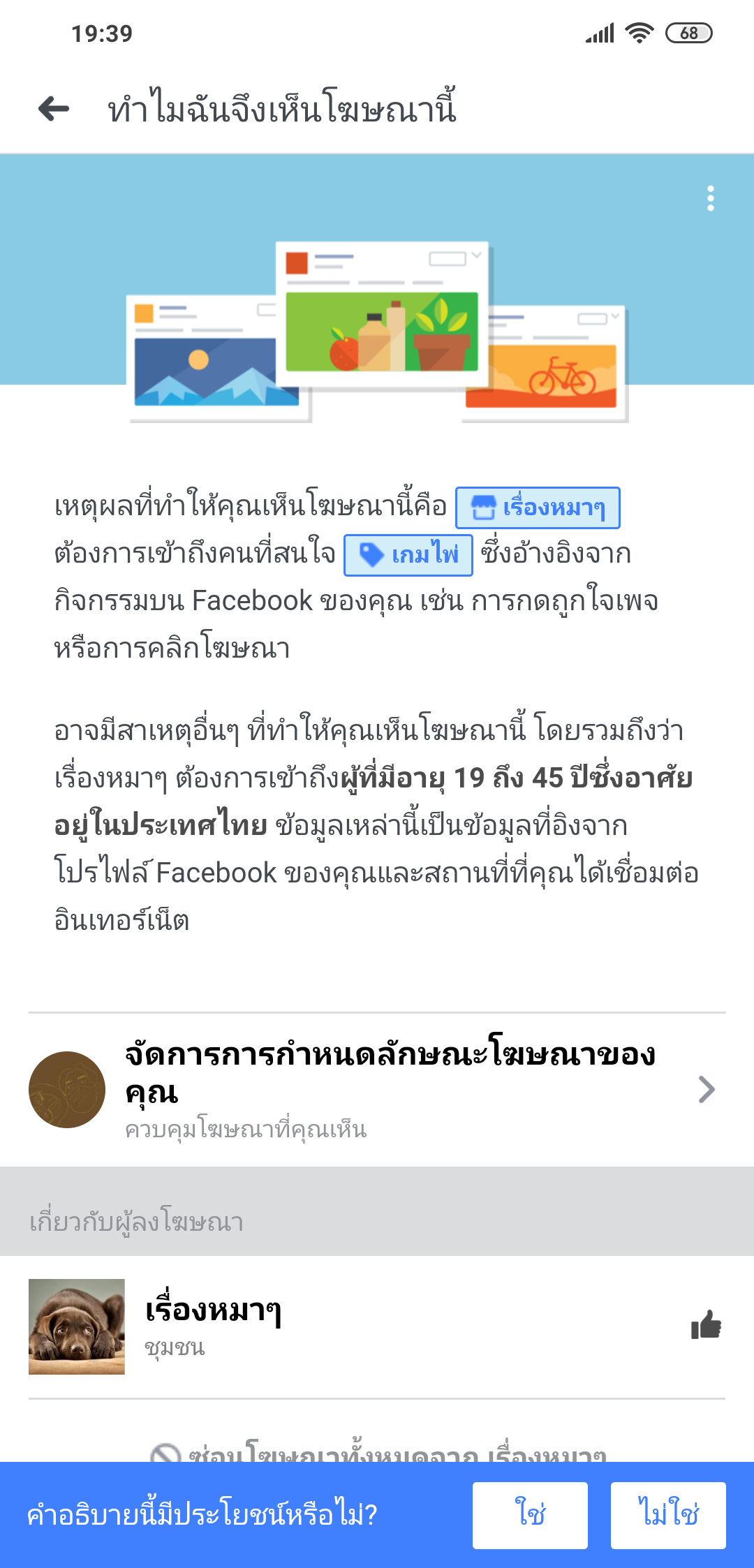 มันไม่ไหวจริงนะครับ เยอะมาก พอคลิ๊กเข้าไปดูตรง "ทำไมจึงเห็นโฆษณานี้" กลับเจอแท็กที่เราไม่เคยสนใจเลย หรือไม่ก็เจอแท็กที่เราสนใจ แต่เป็นดารแท็กมั่วๆ เพื่อให้ขึ้นหน้าฟีดของเราเฉยๆ