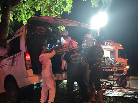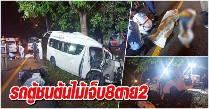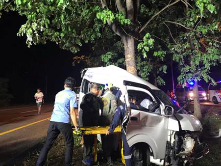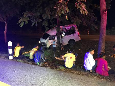 แรงงานพม่าจะกลับบ้าน นั่งรถตู้เกิดหลับในชนต้นไม้ตาย 2 เจ็บ 8 ราย