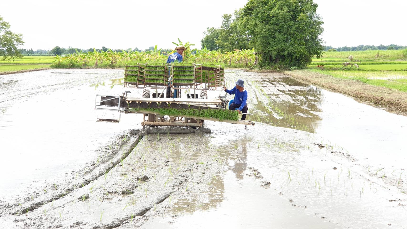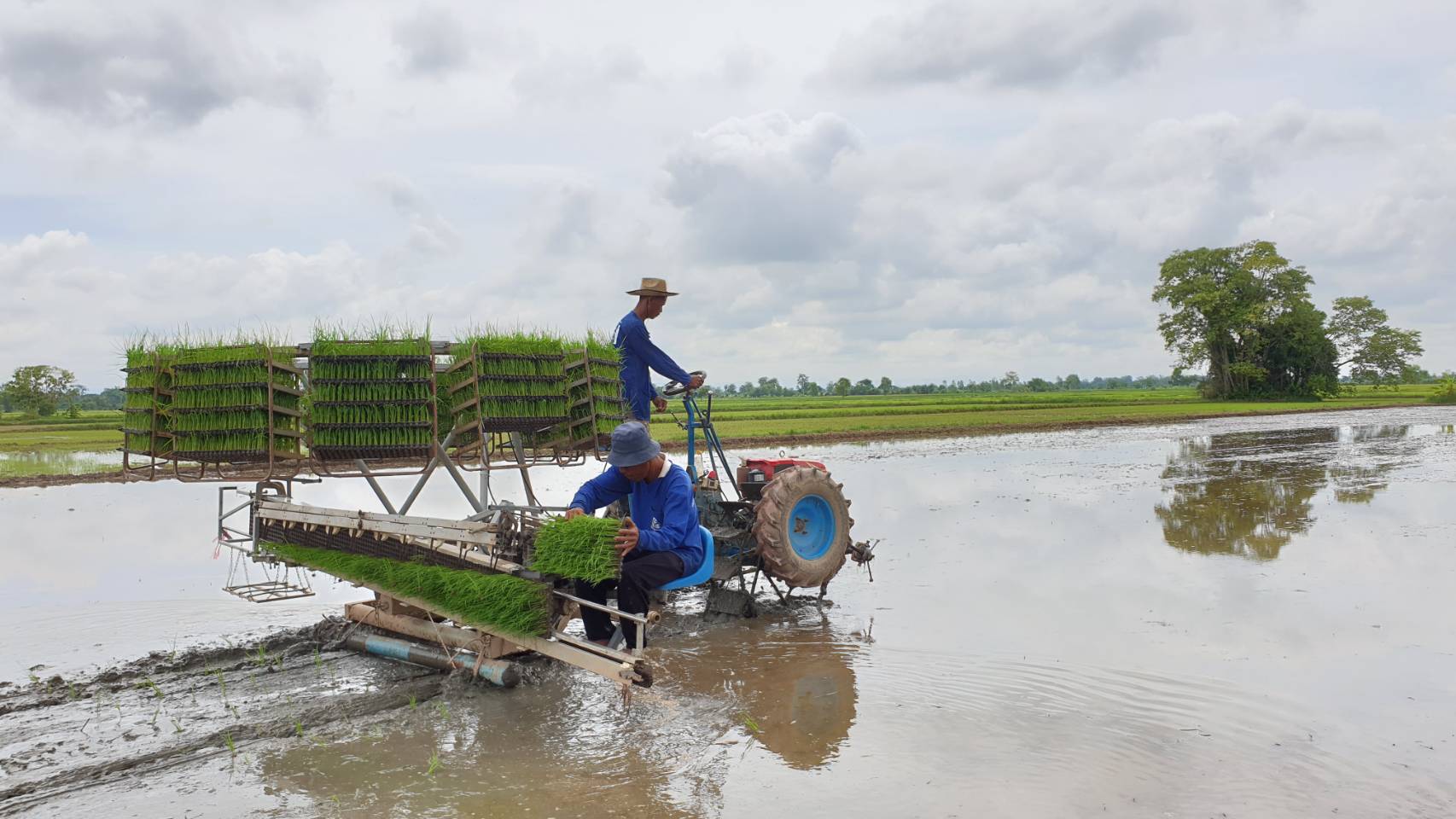 สำหรับวิธีการปลูกข้าว กข 79 จะใช้เครื่องหย่อนกล้า ช่วยลดต้นทุนค่าเมล็ดพันธุ์ลงได้มาก จากเดิมทำนาหว่านใช้เมล็ดพันธุ์เฉลี่ย 20 กิโลกรัมต่อไร่ แต่ใช้เครื่องหย่อนกล้าใช้เมล็ดพันธุ์อัตรา 6 กิโลกรัมต่อไร่ หลังจากปลูกได้ประมาณ 1 เดือนเศษ พบว่าข้าวมีการเจริญเติบโต แตกกอดีมาก โดยไม่ต้องใส่ปุ๋ยบำรุงใดๆ ทั้งสิ้น เนื่องจากดินมีความอุดมสมบูรณ์ค่อนข้างดี อย่างไรก็ตาม จะติดตามผลในแปลงสาธิตนี้เพื่อเก็บข้อมูลประกอบการตัดสินใจของสมาชิกกลุ่มนาแปลงใหญ่ต่อไป