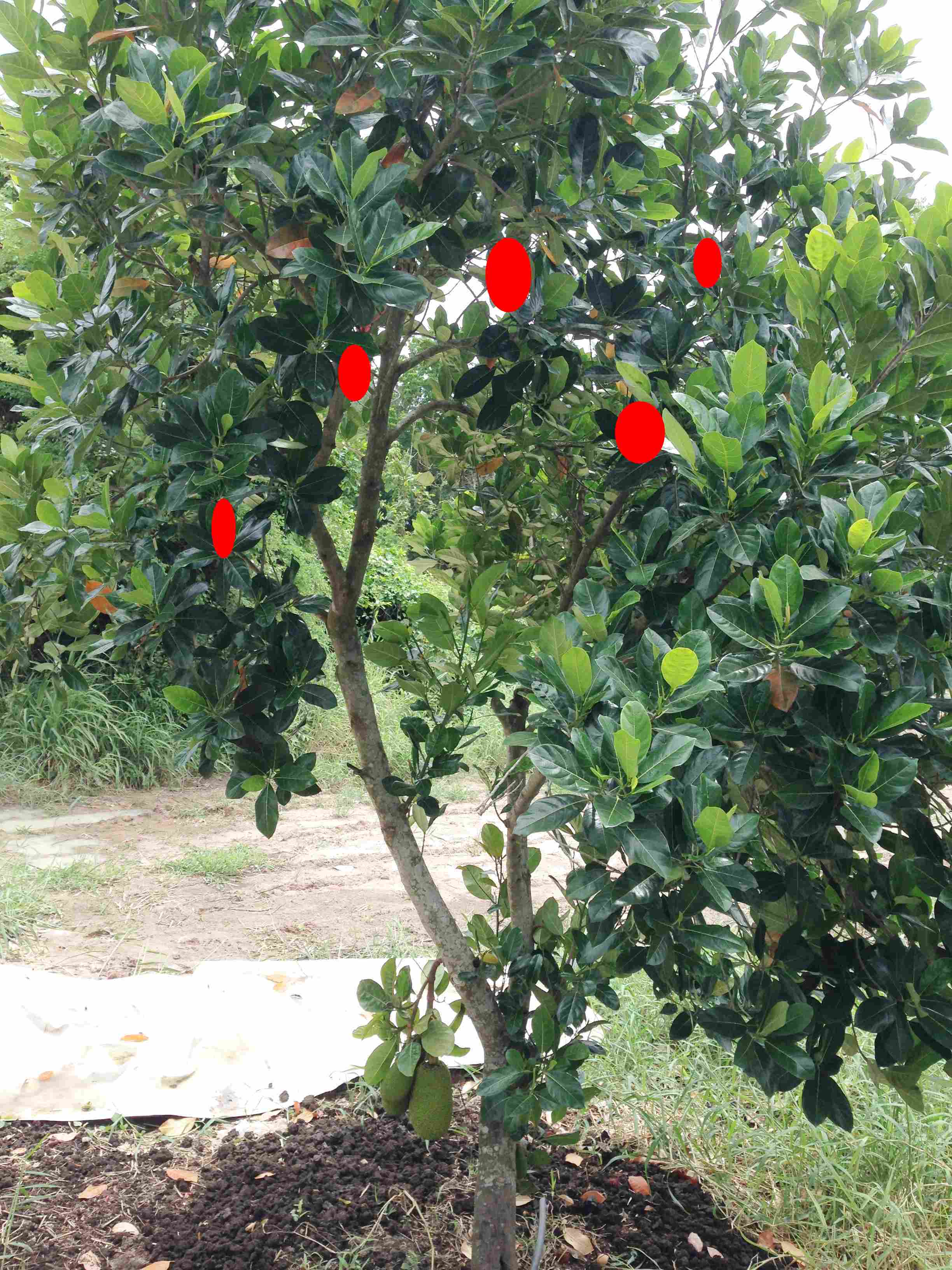 ขนุนจำปากรอบอายุ 4 ปีกว่าเส้นผ่าศูนย์กลางต้น 5"ลูกขนุนประมาณ 20-30 ลูก ถ้าไม่เด็ดออกลูกจะเล็กต้นจะตายไหมครับ?