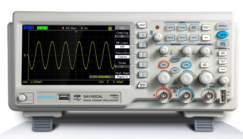 ไปเข้าเครื่อง Oscilloscope เพื่อแสดงรูปคลื่นออกมา และวัดความถี่จาก function ของ Oscilloscope ครับ
