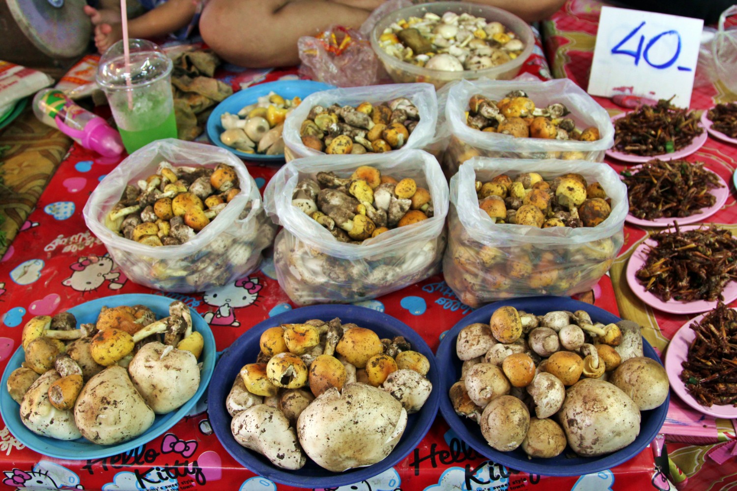 เมื่อวานไปหาข้าวมื้อเย็นกินที่ตลาดเเยกนเรศวร ร้านที่เราชอบกินเขาปิด ก็เลยไปหาก๋วยเตี๋ยวกิน เเละถือโอกาสเดินเที่ยวตลาด กะซื้อของอะไรกิน เเต่โอ้ววว โชคดีมากๆ มีชาวบ้านเอาเห็ดระโงกมาขาย เยอะมากๆ เราไม่ลั