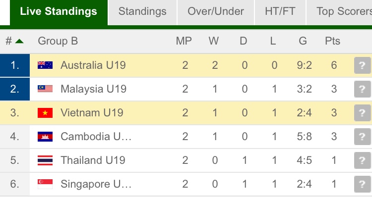 ออสเตรเลีย 3-0 พม่า กัมพูชา 3-0 ลาว ไทย 3-2 อินโดนีเซีย