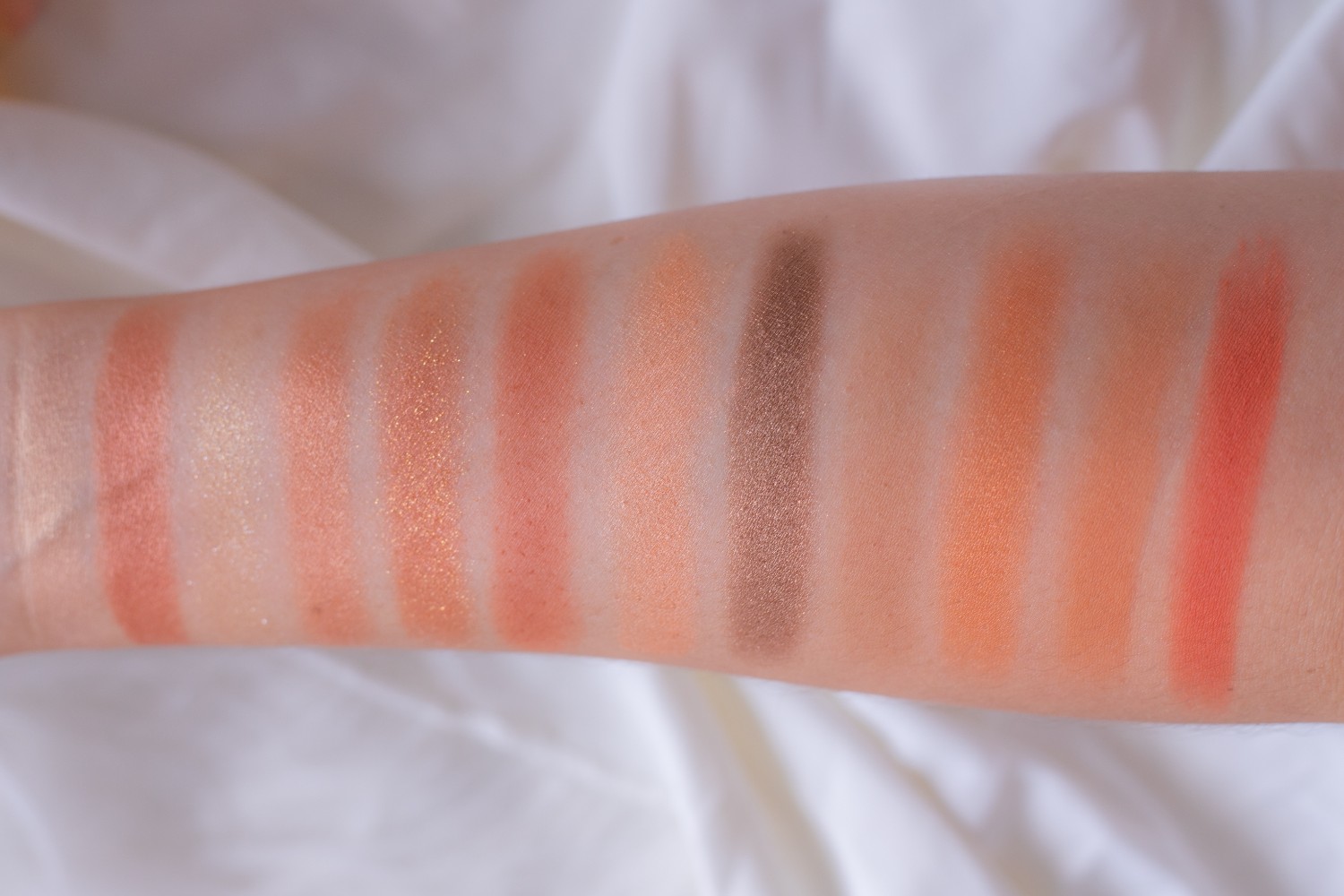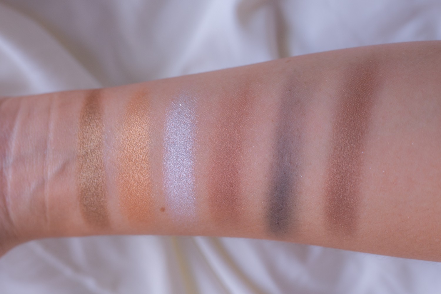 อายแชโดว์ตัวนี้จะมีทั้งเนื้อแมทและชิมเมอร์ซึ่งจะบอกว่ามันมีความต่างกันพอสมควรเลยหล่ะ ในส่วนของเนื้อแมทเนื้อในตลับจะมีความแข็ง สีออกยากพอสมควร ซึ่งทำให้เนื้อสีที่ติดบนผิวจะไม่ค่อยชัด ต้องป้ายเยอะๆ หลายๆ รอบ ส่วนเนื้อชิมเมอร์จะมีความร่วนซุยพอสมควร แต่พอป้ายบนผิวสีเนียนติดดี เม็ดสีชัดเอามากๆ เลย ถ้าเอาถัวๆ กันไป พาเลทนี้ก็ได้อยู่นะ