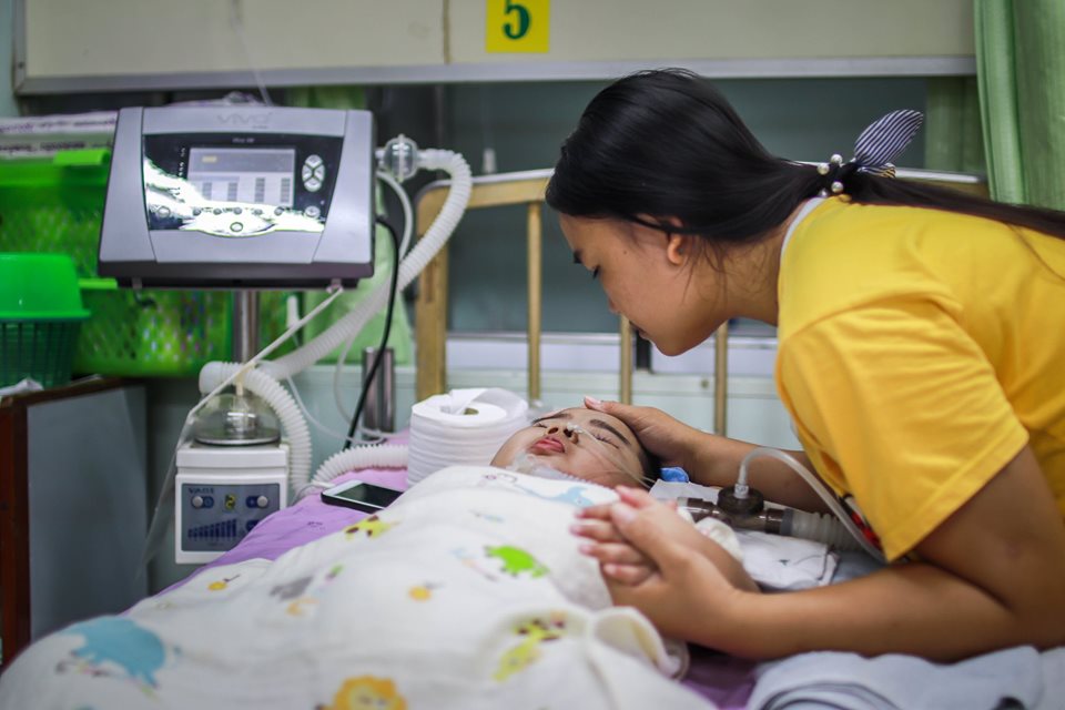 ปัจจุบัน น้องคิมนอนรักษาอยู่ใน รพช.หนองบัว อ.หนองบัว จ.นครสวรรค์ เป็นเวลาเกือบ 2 ปีแล้ว ไม่เคยได้ลืมตามาส่งยิ้มให้แม่ ไม่เคยได้กลับบ้าน ไม่เคยได้วิ่งเล่น หัวเราะ เหมือนเด็กคนอื่น น้องคิมต้องใช้เครื่องช่วยหายใจต่อกับท่อช่วยหายใจบริเวณลำคอ ซึ่งเครื่องนี้ได้รับความอนุเคราะห์จากทาง รพ. สวรรค์ประชารักษ์ , ต้องใช้เครื่องดูดเสมหะ, และอุปกรณ์อื่นๆอีกมากมายเพื่อที่จะช่วยต่อลมหายใจให้น้องคิม