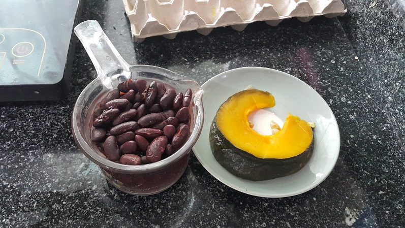 นี่เป็นภาพถั่วแดงกับฟักทอง