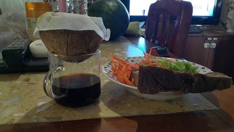 ทำเองโดยใช้กะลามะพร้าวเผา (ทำง่ายเพราะปอกมาแล้ว)