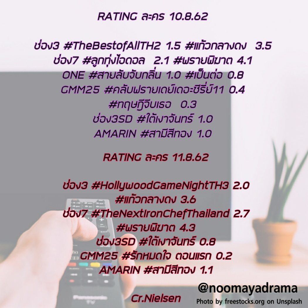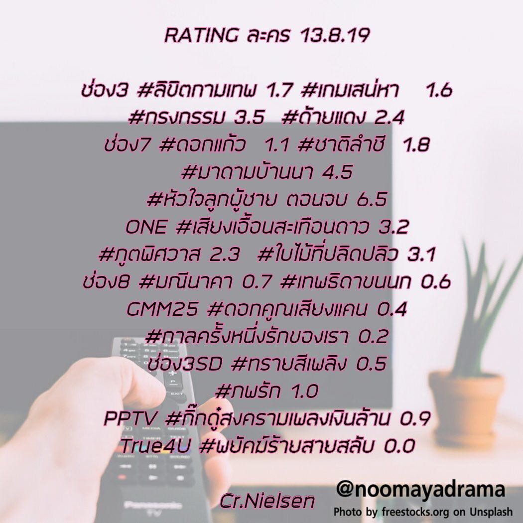 เรตติ้งละคร 9-10-11-12-13 ส.ค. 62