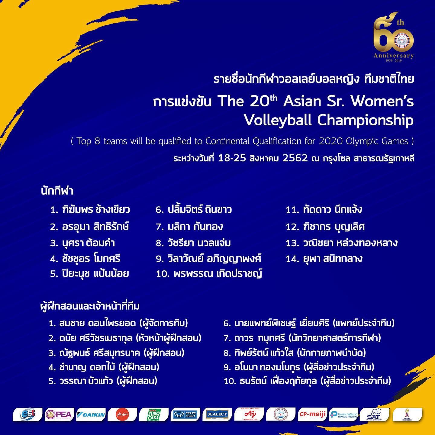 รายชื่อนักวอลเลย์บอลทีมชาติไทยชุดชิงแชมป์เอเชีย