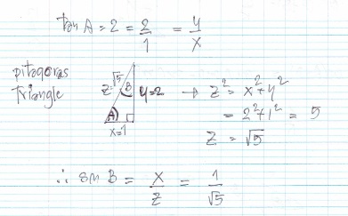 (2) ทำโดยใช้ ความสัมพันธ์ Pitagoras ได้คำตอบ = 1 / Sqrt(5)