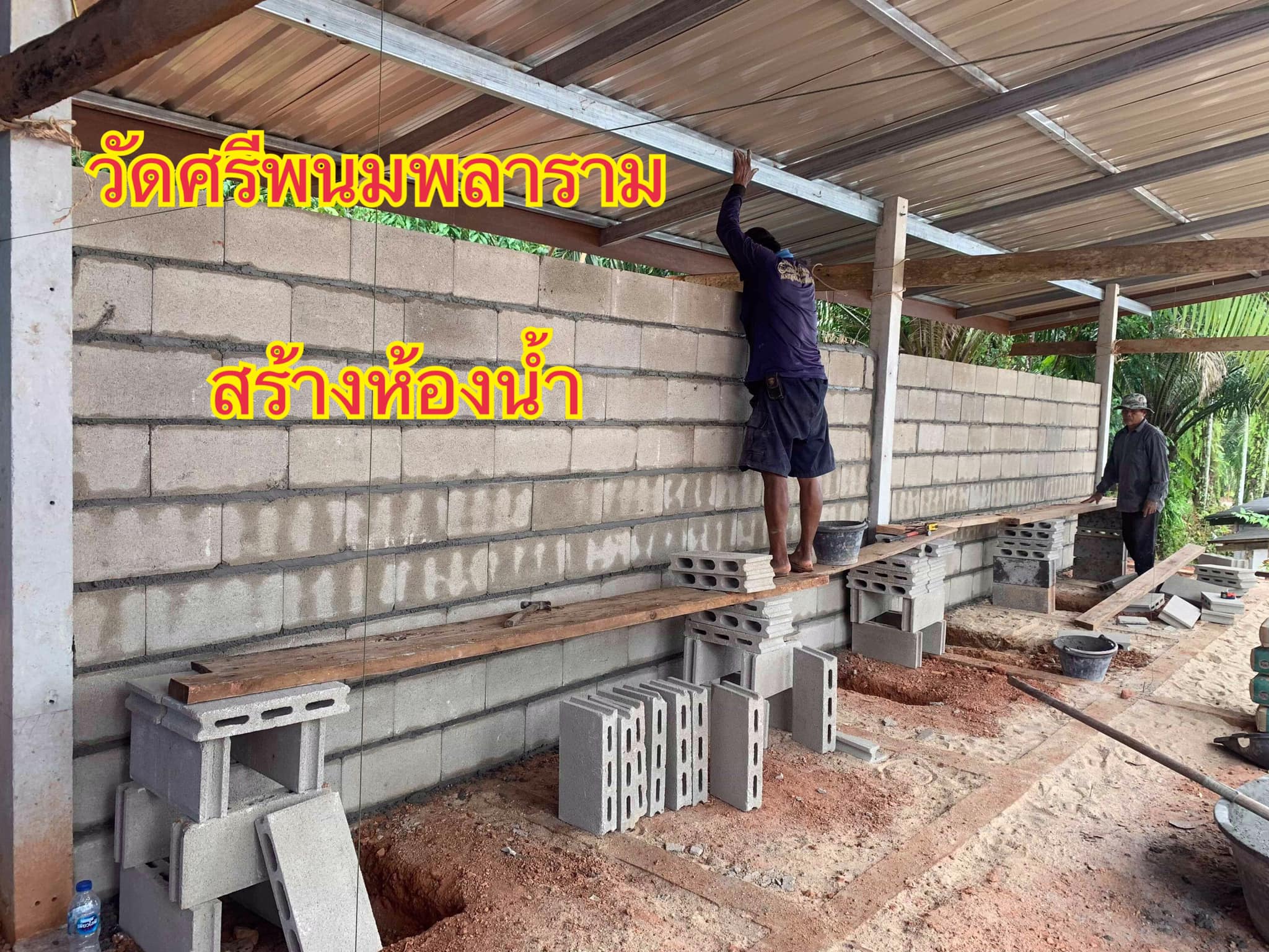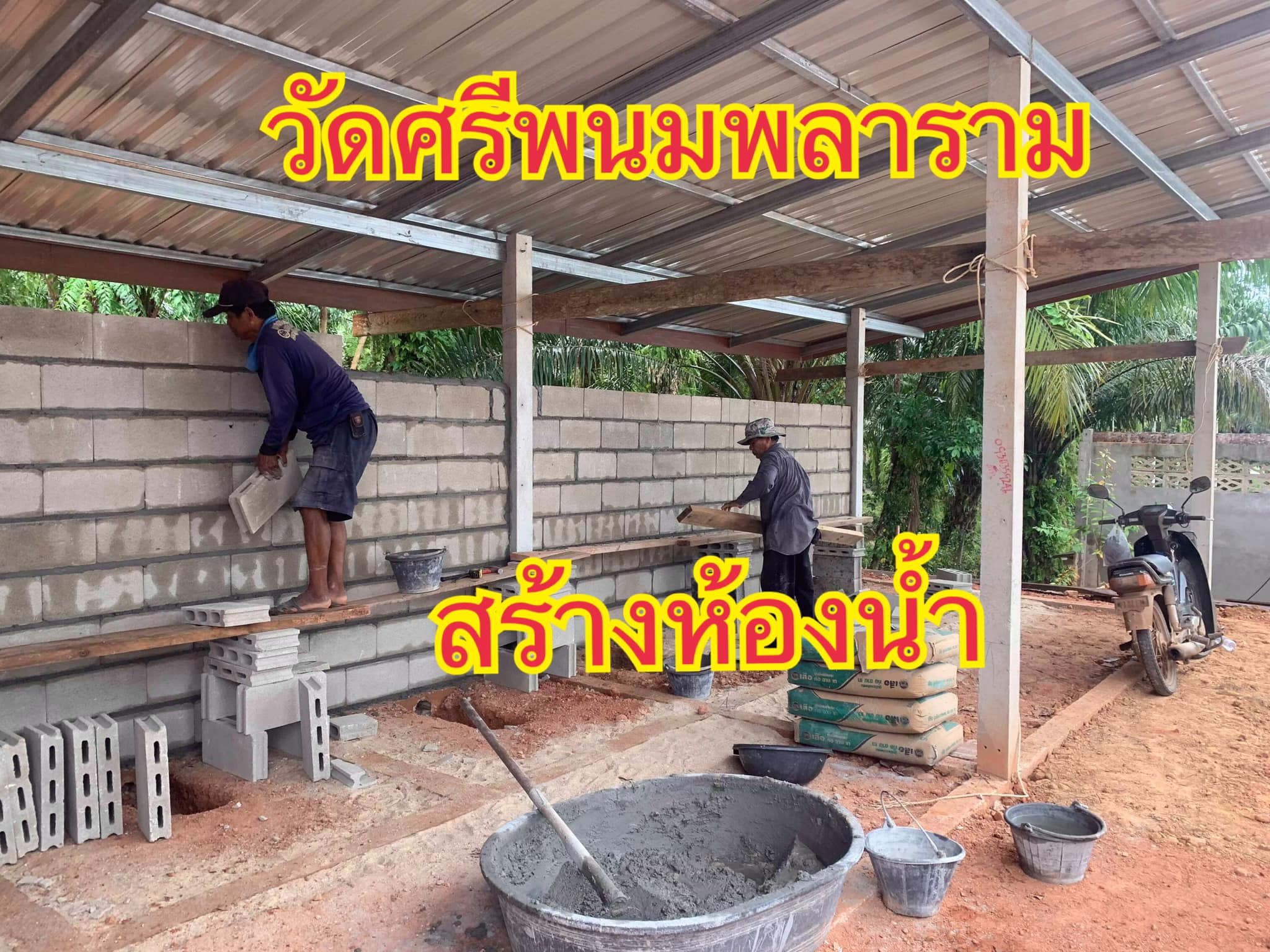 สร้างความสุข ด้วยการสร้างห้องน้ำ ความคืบหน้าการก่อสร้างห้องน้ำ ถวายวัดศรีพนมพลาราม อำเภอท่าชนะ จังหวัดสุราษฏร์ธานี