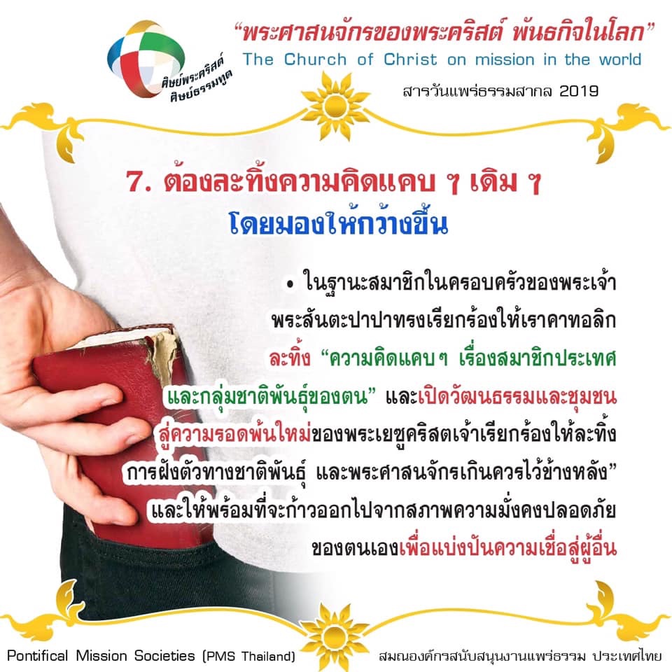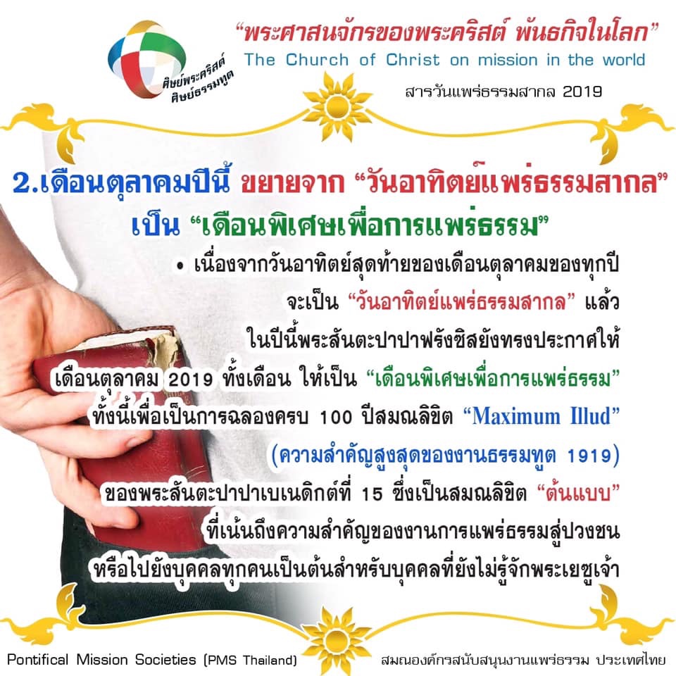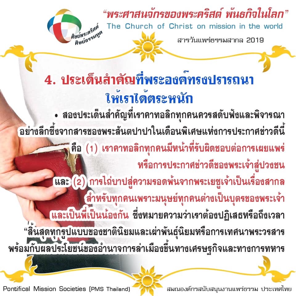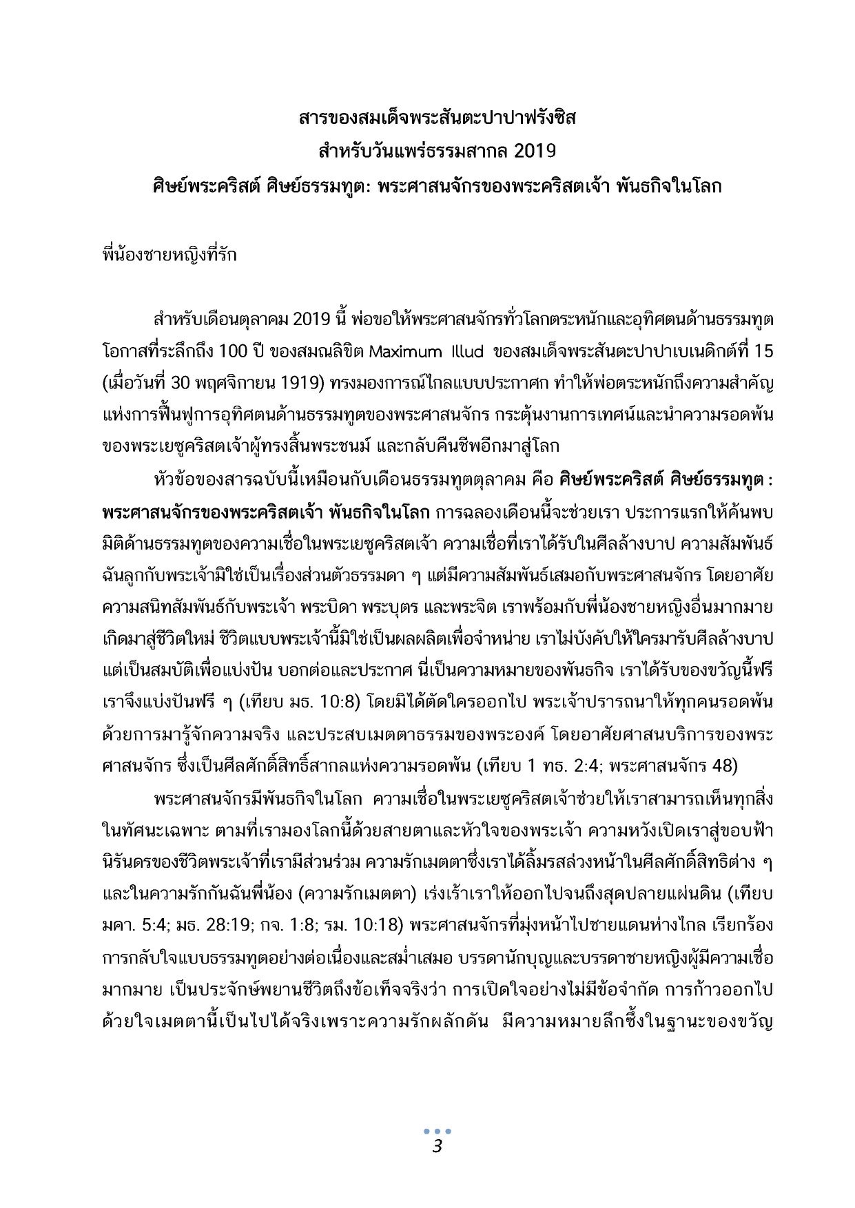 สารวันแพร่ธรรมสากล2019 “พระศาสนจักรของพระคริสต์พันธกิจในโลก”
