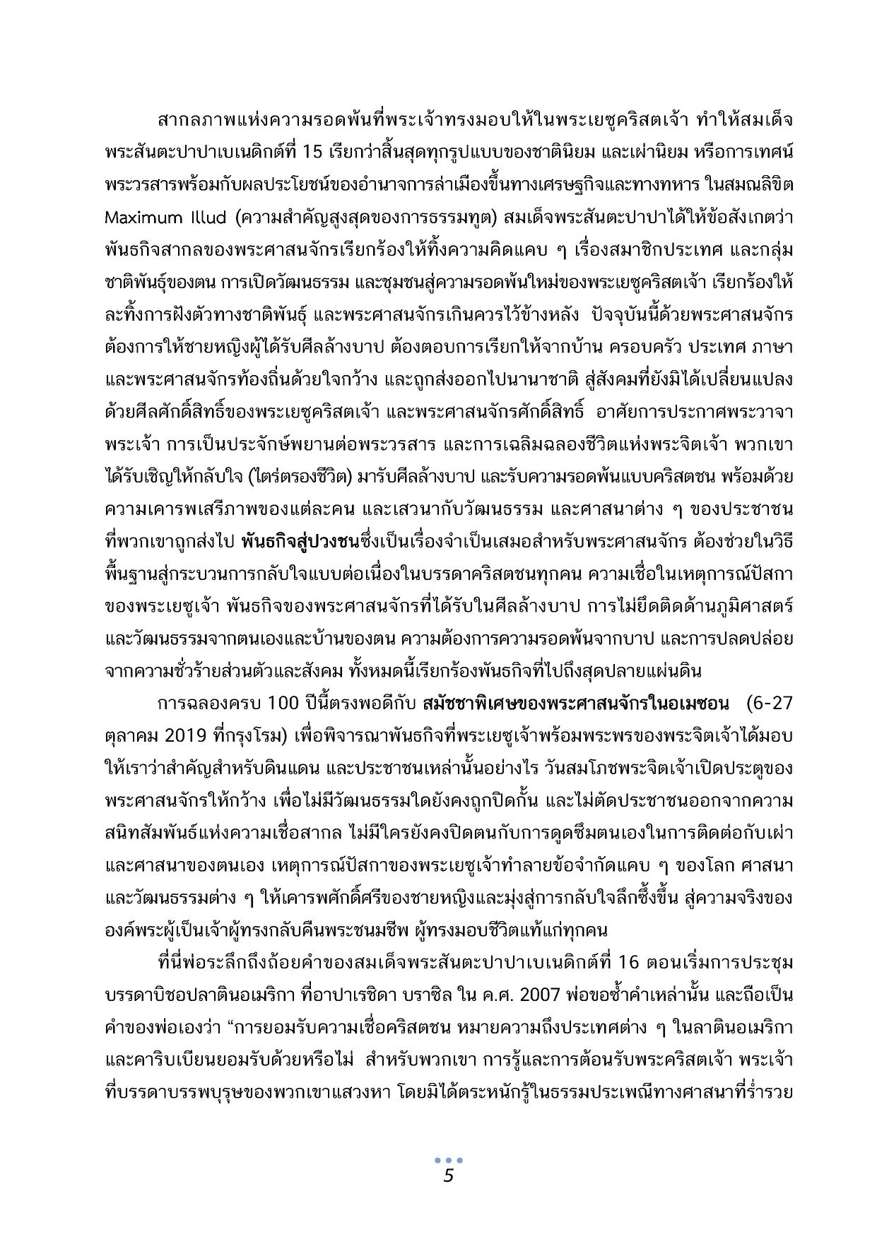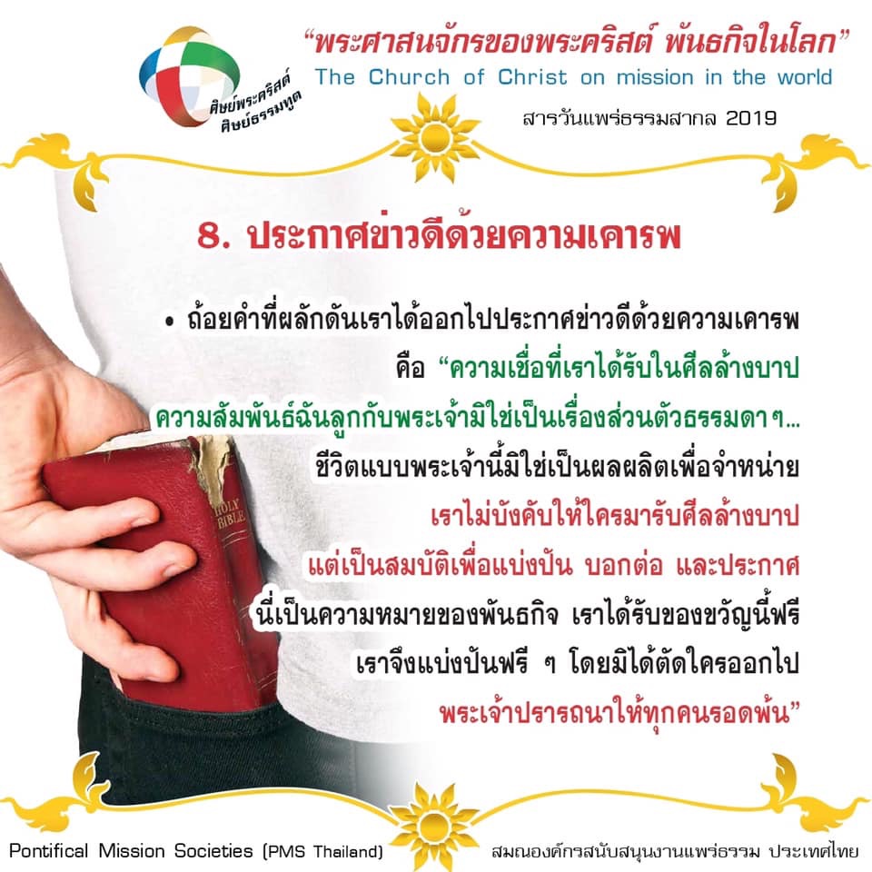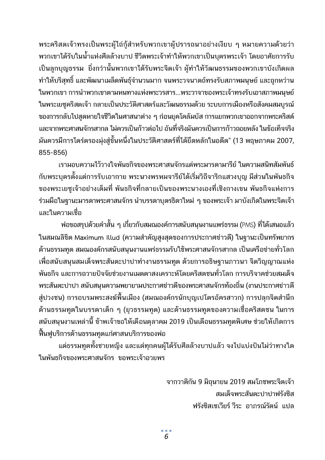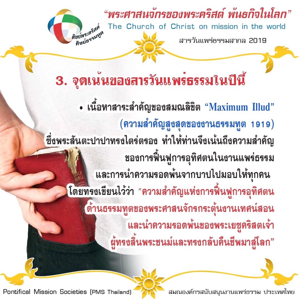สารวันแพร่ธรรมสากล2019 “พระศาสนจักรของพระคริสต์พันธกิจในโลก”