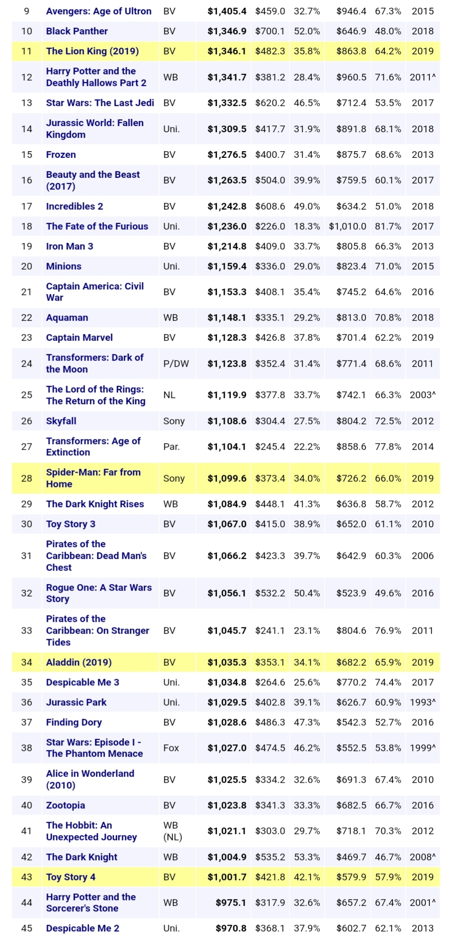 ขึ้นสู่อันดับ 4 ของภาพยนตร์ทำเงินสูงสุดทั่วโลก (แบบไม่นับกรณีค่าเงินเฟ้อ) เป็นที่เรียบร้อยแล้ว ขอแสดงความยินดีกับค่าย Disney ด้วยจ้า