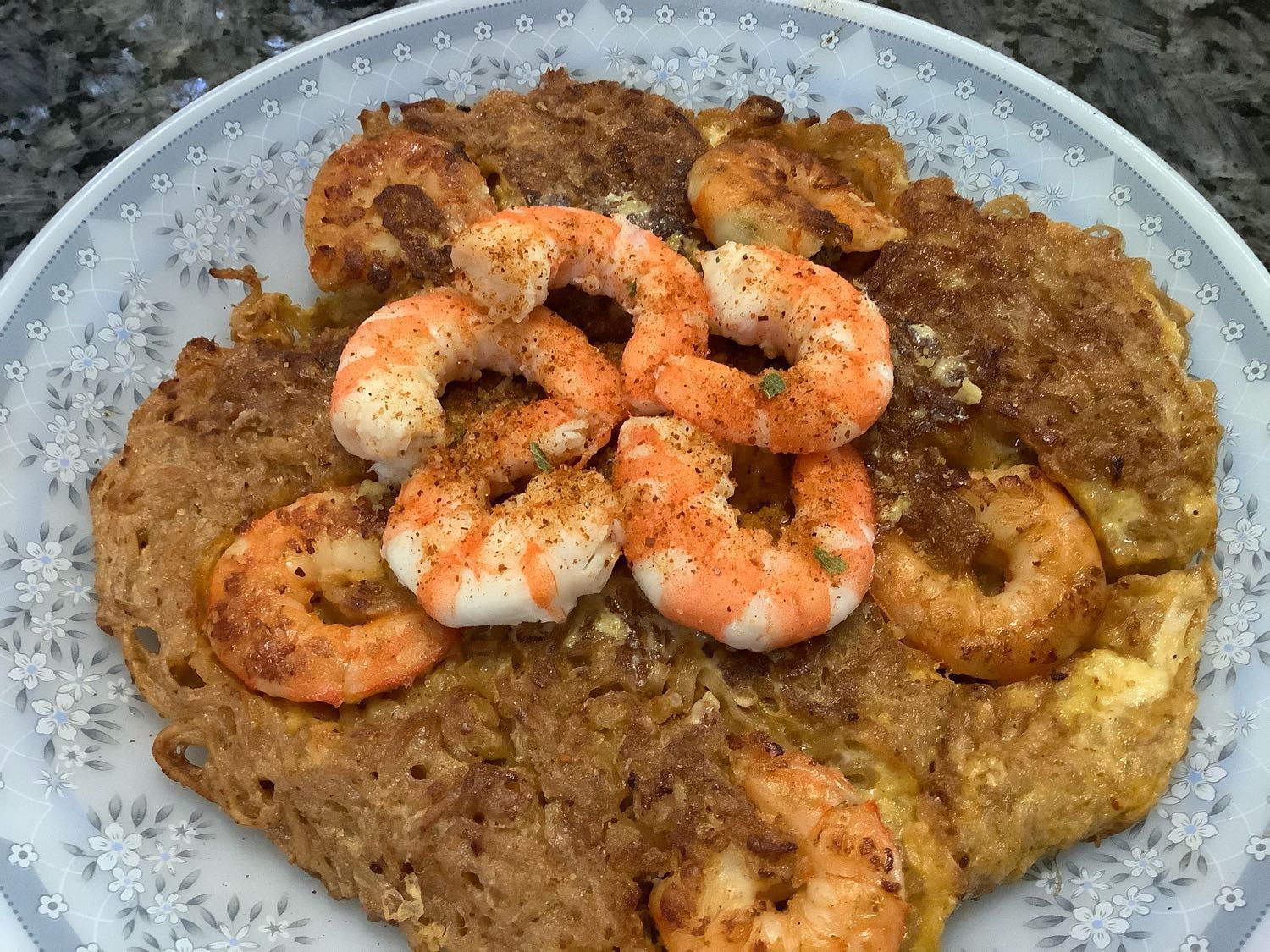 ห่างหายไปนานกับการทำกับข้าว วันนี้เจอเสบียงในตู้เย็น กุ้งต้ม (เหลือจากไหว้ สารทจีน) ไข่ไก่ และมาม่า ก็เลยลองทำเมนูนี้ดู