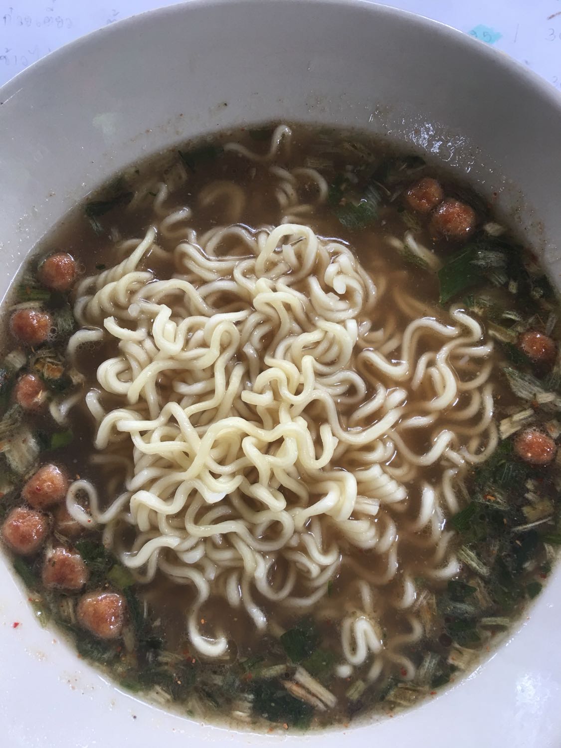 เมนูบะหมี่กึ่งสำเร็จรูปรับประทานคลุกกับไอศครีมโคนรสวนิลา โดยภาพที่เห็นนี้ถูกไวรัลโดยชาวเน็ตเกาหลีใต้ ที่ขนานนามกันเล่นๆว่าเป็นเมนูสำหรับผู้ยุ่งมาก หรือขี้เกียจเกินไป เลยจับมารับประทานคู่กันไปเลยในชามเ