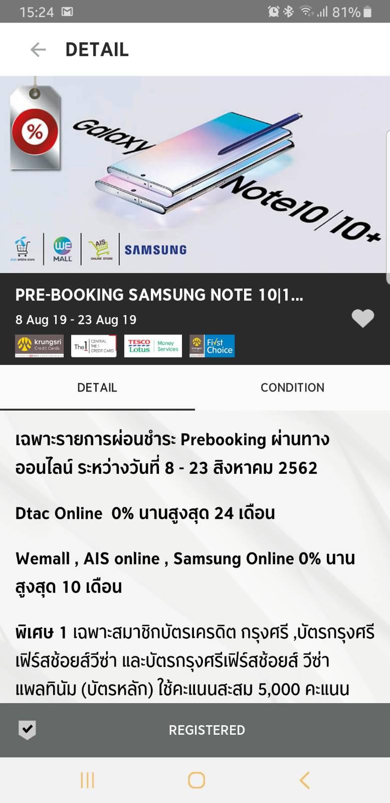 สอบถาม CC AIS เรื่อง ใช้โปรบัตรกรุงศรีจอง Note10 ค่ะ