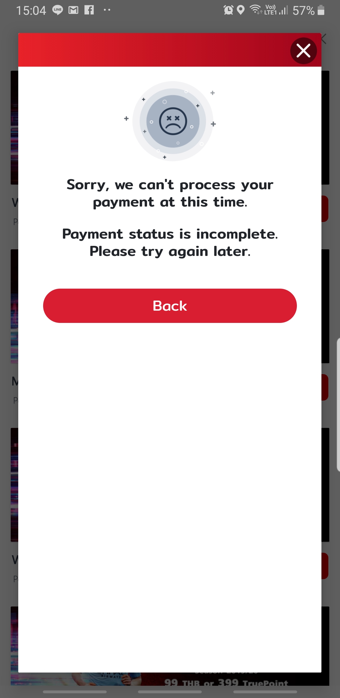 สมัครแพคเกจ True Premier แต่จ่ายเงินไม่ได้