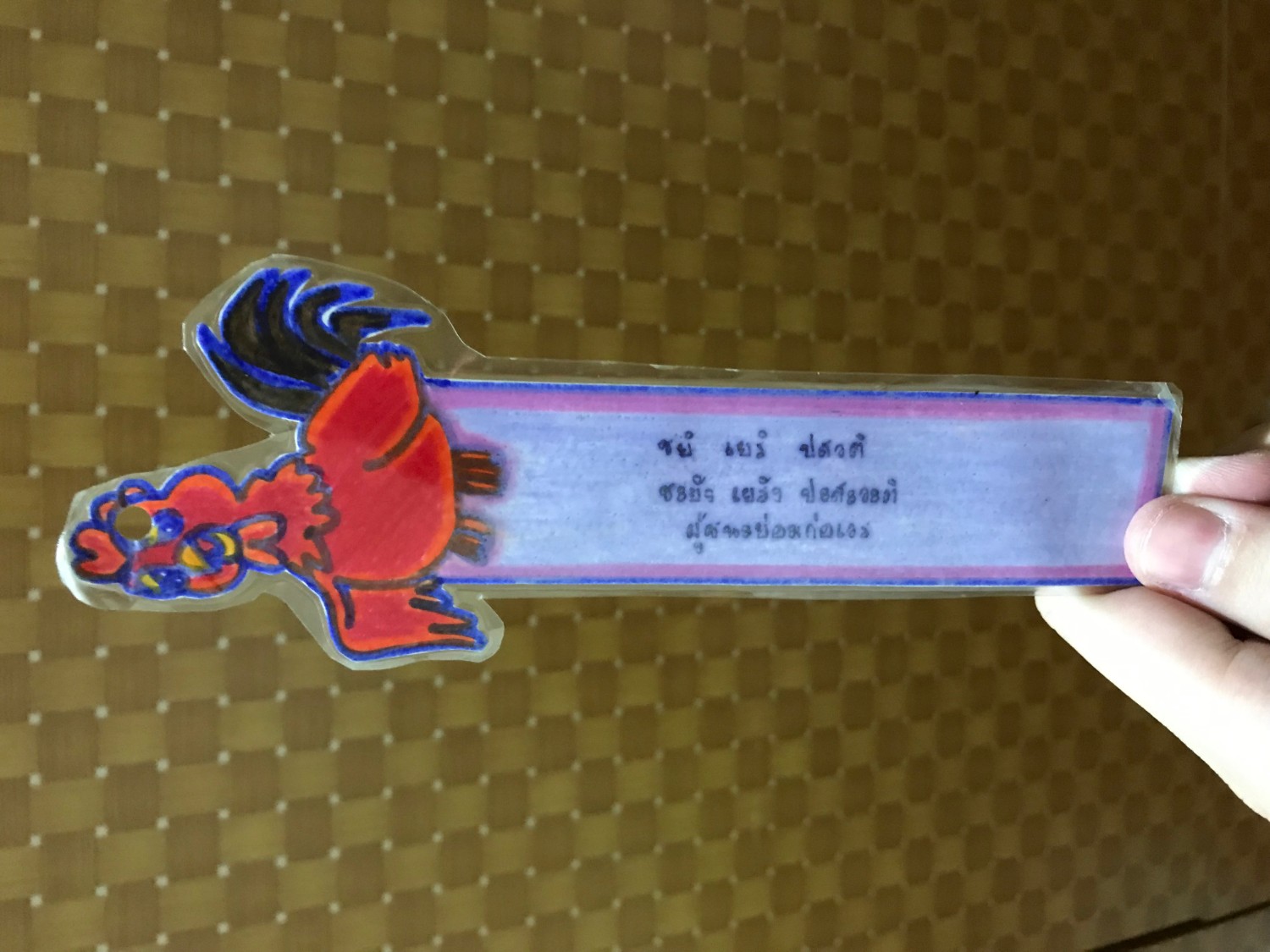 สิ่งที่เรื่องราวความทรงจำของมันย้อนกลับมาทำให้นึกถึง เป็นที่คั่นกระดาษที่นางทำมาให้ ถ้าจำไม่ผิดนางทำที่คั่นกระดาษมาแจกเพื่อนในกลุ่ม โดยทำมาเผื่อให้ผม 1 อัน โดยที่ให้ผมเป็นคนเลือกก่อนว่าอยากได้อันไหน แล้วนางจะเขียนชื่อให้ เพื่อนๆของนางก็อิจฉาแซ่วกันใหญ่ ตอนนั้นผมก็ไม่เข้าใจก็เขิลไปตามปกติ