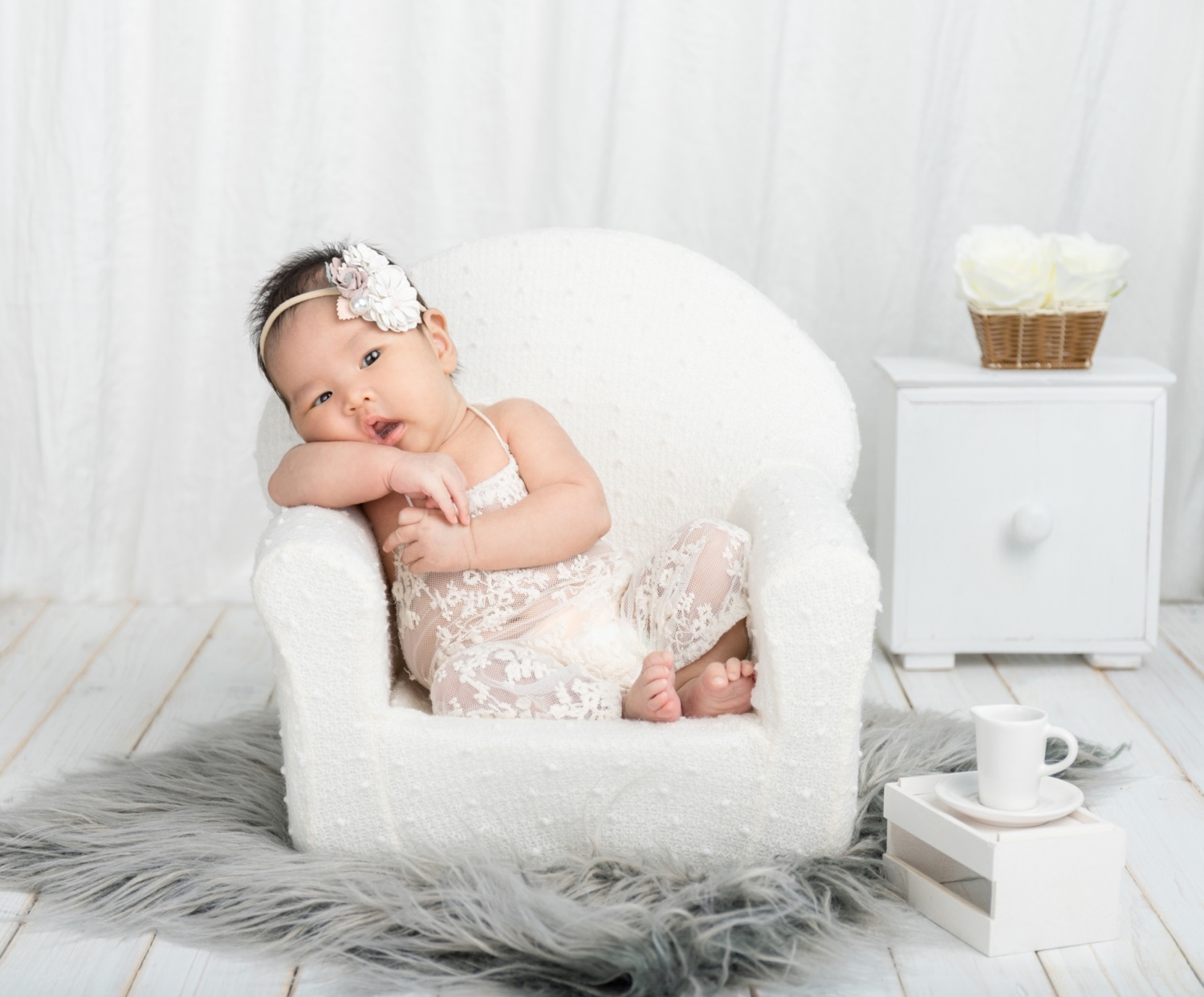 ส่วนใครที่เป็นห่วงเรื่องแสงแฟลชว่าจะอันตรายกับตาของลูกน้อยหรือเปล่า ข้อนี้ก็หายห่วงได้เลยค่ะเพราะทาง HARU Studio มีการใช้ Softbox เพื่อลดความสว่างของแสงและคอยปรับให้แฟลชไม่สว่างจนเกินไป ที่สำคัญคือการวางไฟและแฟลชของที่นี่คือวางหันเข้าหากำแพงไม่ให้เข้าตาน้องโดยตรง และไฟอยู่ห่างจากน้องพอสมควร ถึงแม้การถ่ายภาพเด็กจะมีข้อจำกัดเยอะแต่ที่นี่ก็ทำให้ภาพออกมาสวยมากๆ ค่า