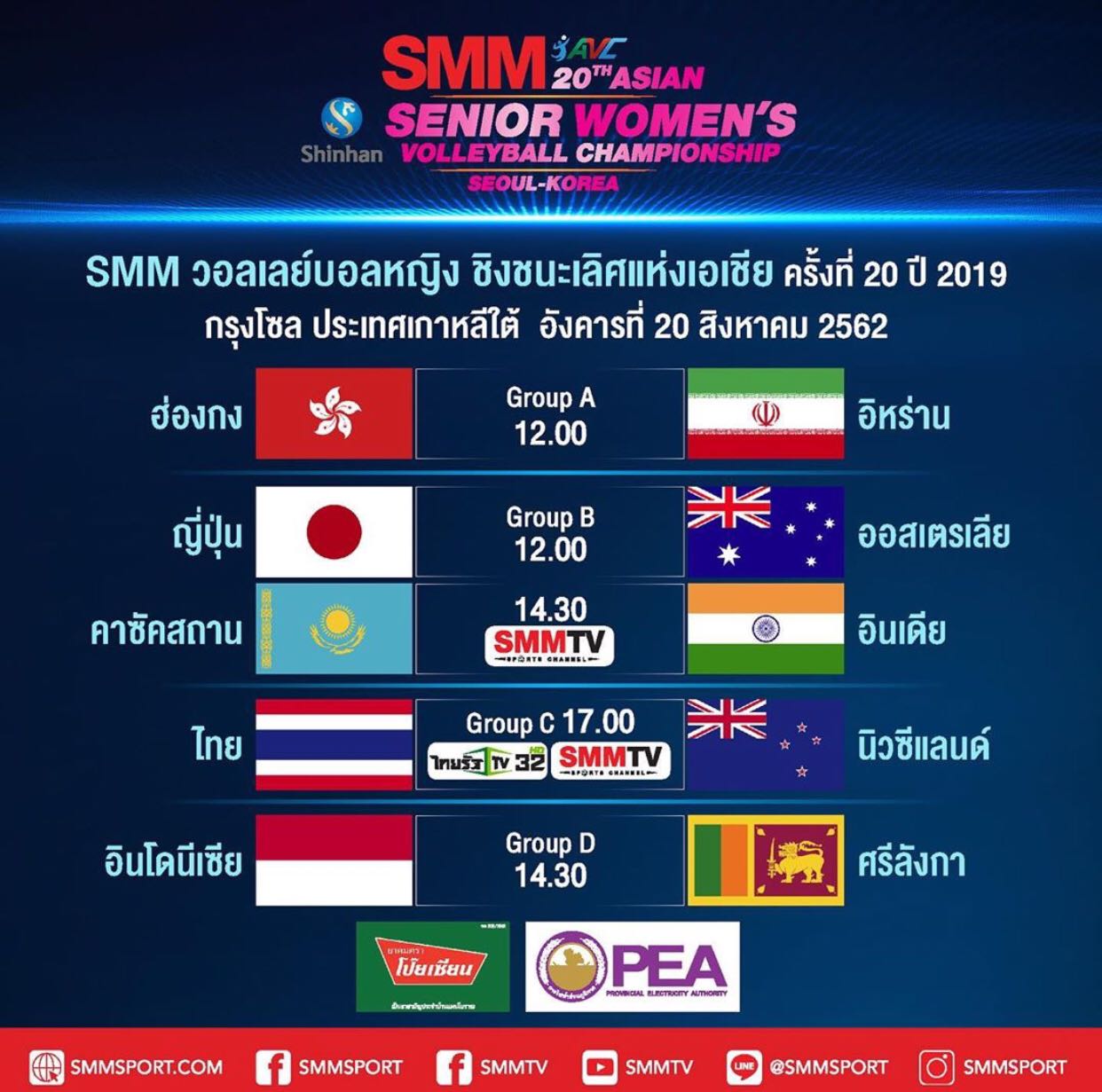 โปรแกรมการแข่งขัน SMM วอลเลย์บอลหญิง ชิงชนะเลิศแห่งเอเชีย วันที่23 สิงหาคม 2562 { พรุ่งนี้ }