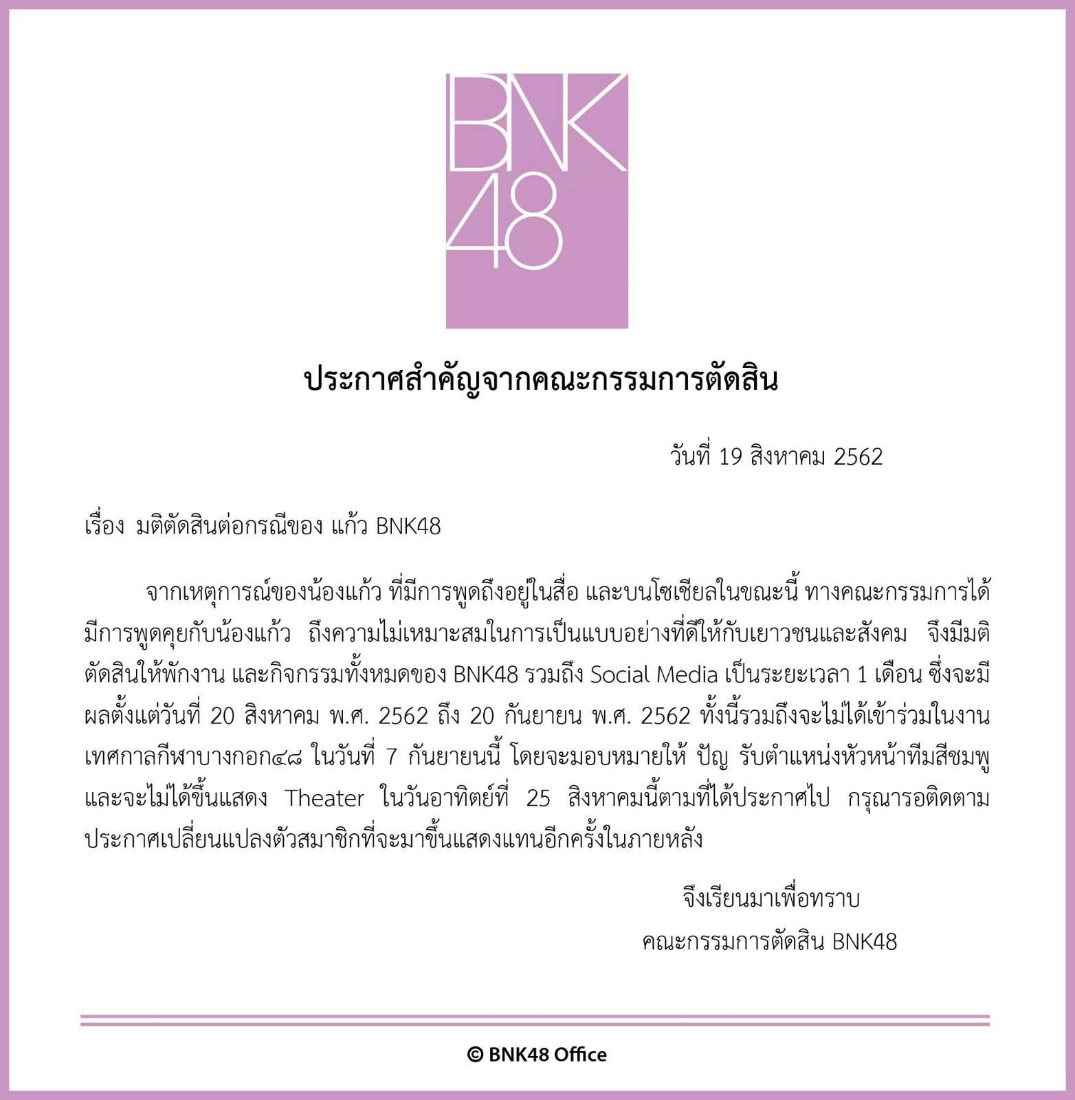จากนี้ไปขอให้โอตะไม่พูดถึงกับกรณีแก้วถ้าเป็นไปได้