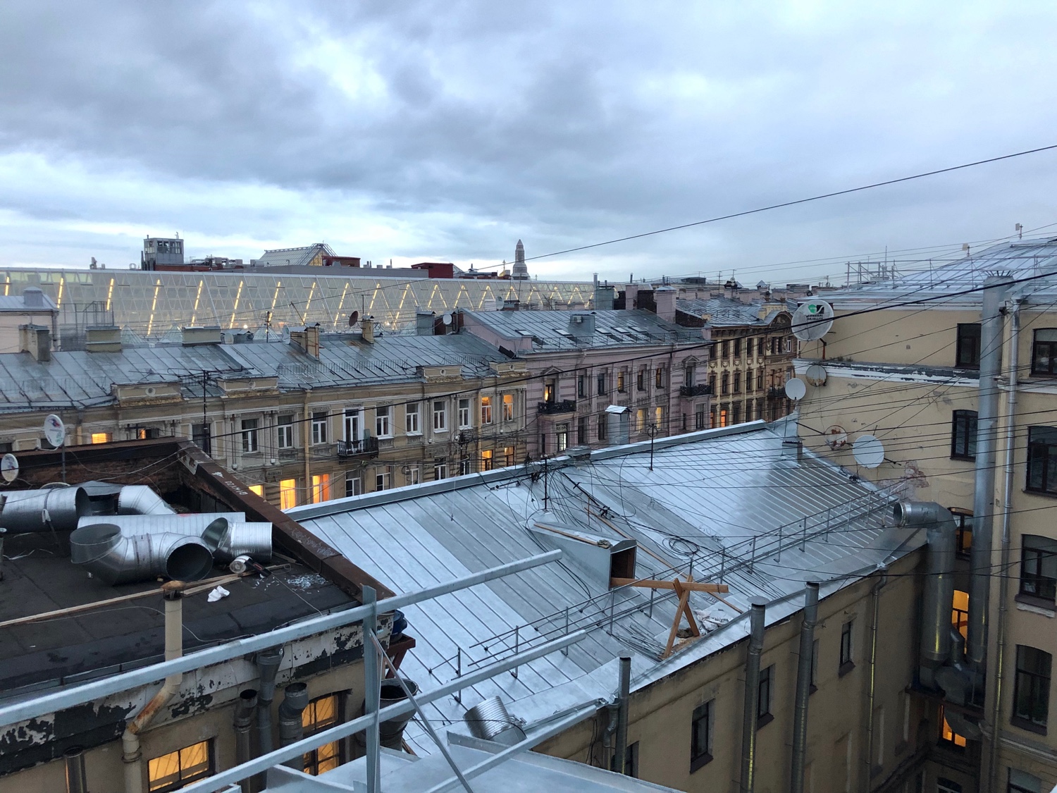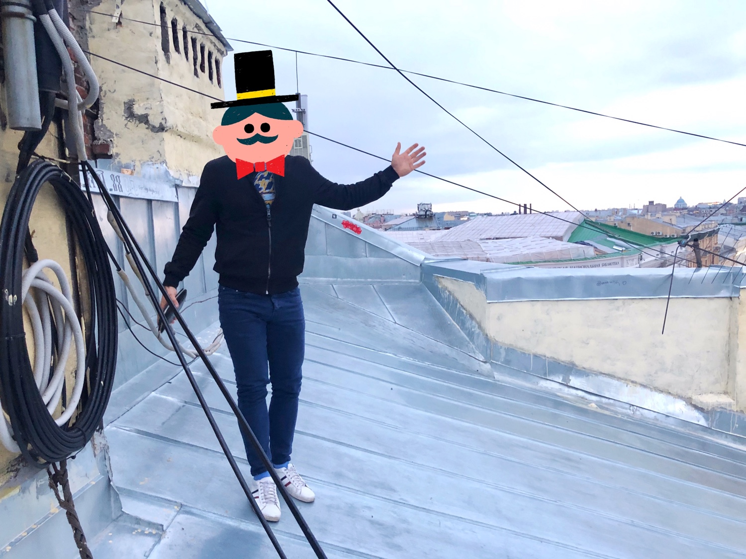 เริ่มจากที่แรก คุณแฟนบอกว่าเดี๊ยว Alexander จะพาไปเที่ยว Roof top นะ เราก็แต่งตัวจัดเต็มไปเลยจ้า มาถึงลงรถไฟฟ้าสถานี Nevskiy prospekt แล้วข้ามถนนเดินตรงมานิดนึงก็จะเห็นเราไม่ได้ถ่ายรูปทางเข้าไว้ เพราะตอนแรกเราไม่รู้ว่านี่คือทางเข้า นึกว่าเค้ามารับเพื่อนหรืออะไร เพราะทางเข้าแบบน่ากลัวมาก ขึ้นมาที่อพาร์เม้นท์ชั้น 5 เดินผ่านใต้หลังคาที่เต็มไปด้วยก้อนกรวด และปีนขึ้นไปบนหลังคา เราก็คิดเห้ยไป Rooftop มันจำเป็นต้องลำบากขนาดนี้เลยอ่อ มันทะ