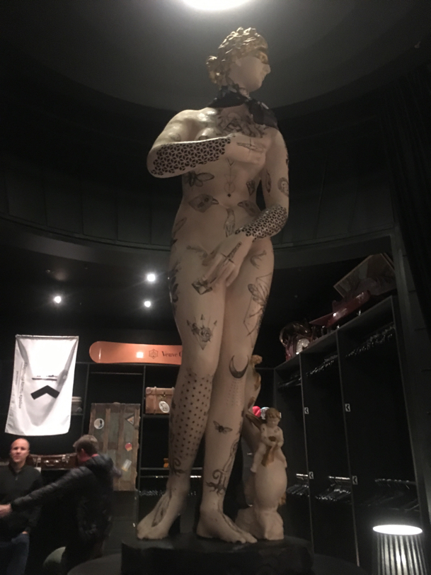 เข้าไปจะเจอรูปปั้นสาวขี้อายอยู่ตรงกลาง ด้านหลังรูปปั้นเป็นที่เก็บเเจ๊กเกต อุปกรณ์กันหนาวต่างๆ เก็บเสร็จก็เข้าไปในร้านกันเลย
