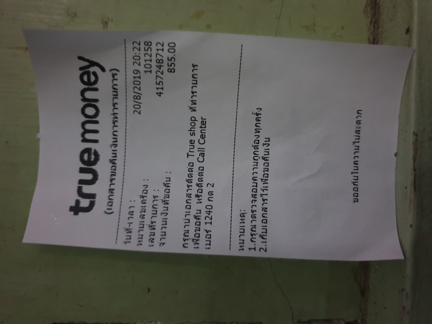 จ่ายบิลตู้ทรู แต่ได้เอกสารขอคืนเงิน มาแทนใบเสร็จ