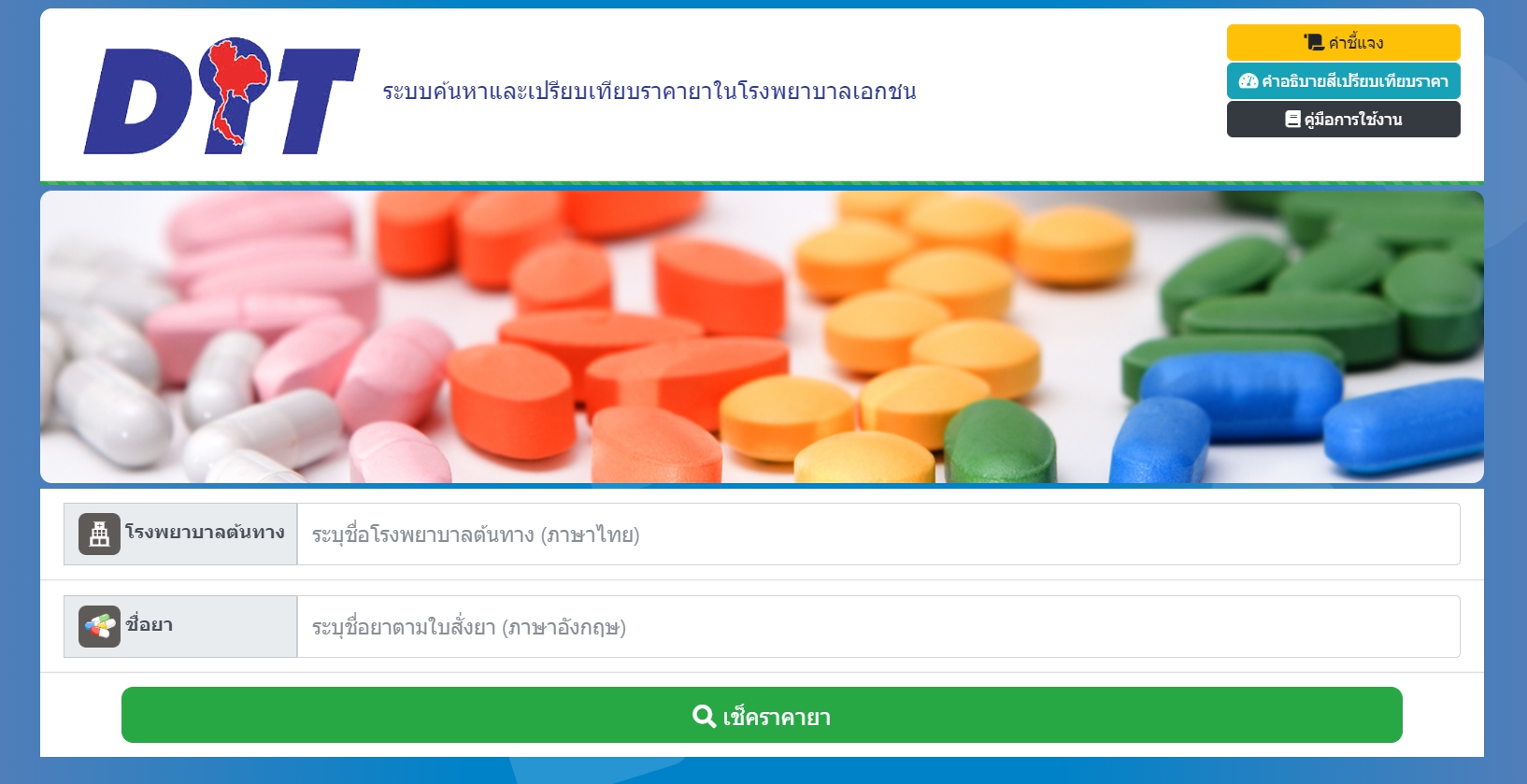 เว็บไซต์ : https://hospitals.dit.go.th/app/drug_price_search.php