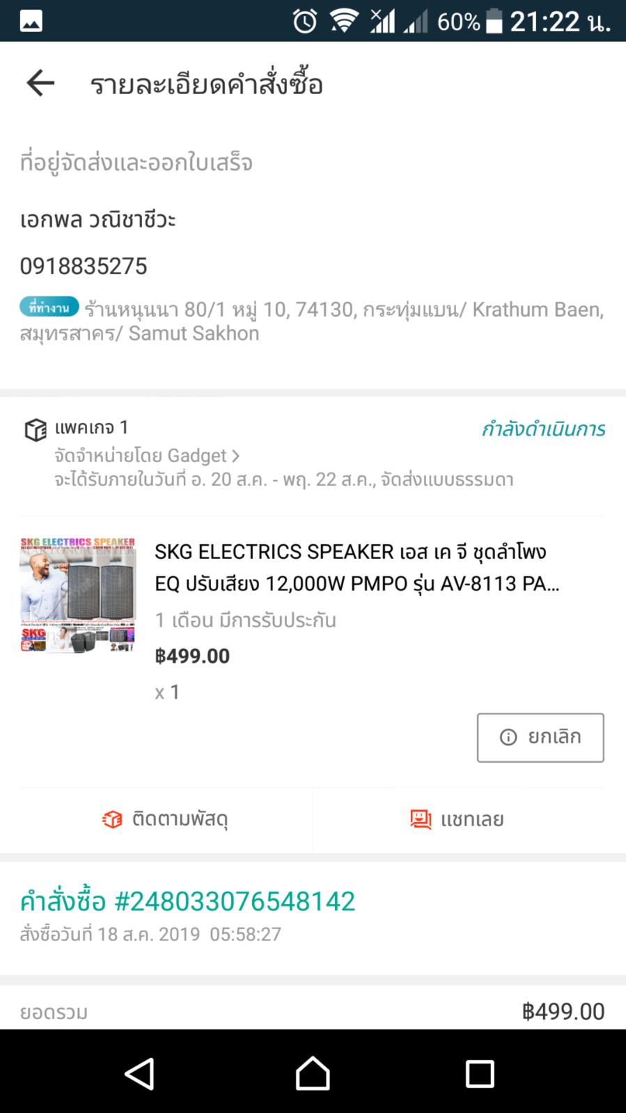 เนื่องจากสั่งสินค้า จากร้านมายองในลาซาดา เป็นตู้ ลำโพง ขนาดใหญ่