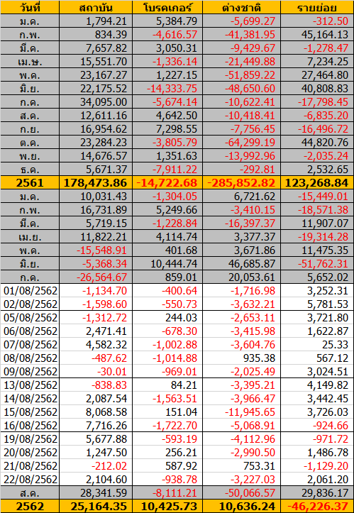 Sinthorn Summary 22/8/2562 : ต่างชาติขายสุทธิ -3,227.03 ลบ.