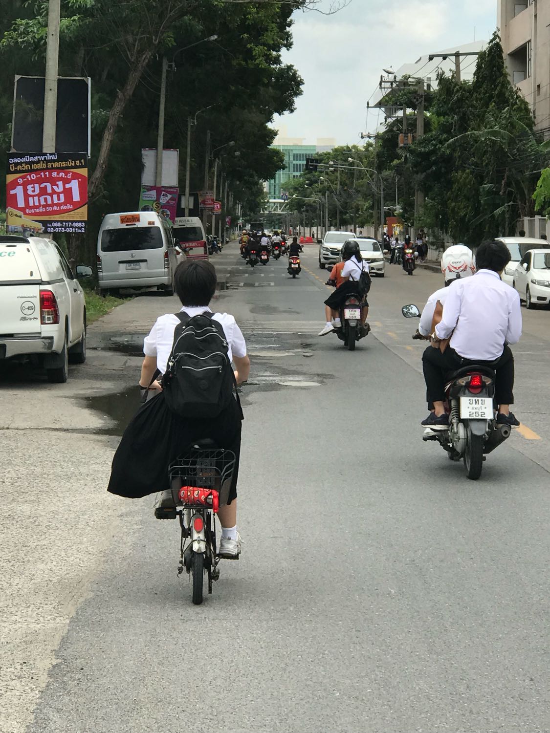 เอาจริงๆ เดินก็ยังได้เลย จักรยานนี่สบายมาก แต่หนุ่มสาวส่วนใหญ่ กลับใช้มอเตอร์ไซด์กัน