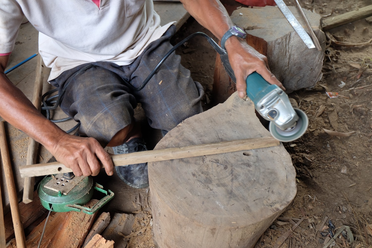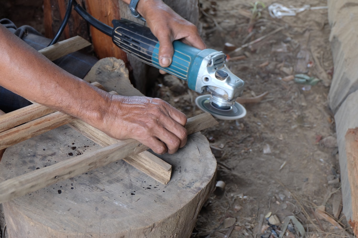 1.ตัดและเหลาไม้ตามชิ้นส่วนที่ต้องการ