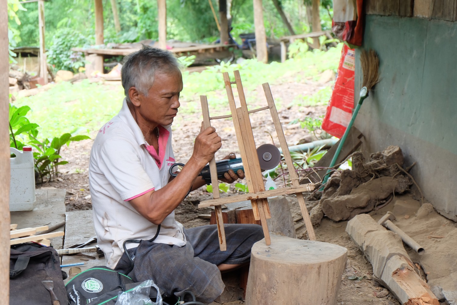 เลยนึกขึ้นได้ว่าพ่อเราเก่ง ทำได้แน่นอน เพราะตั้งแต่เด็กเวลาเราต้องใช้อุปกรณ์อะไร พ่อจะทำเองหมด ทั้งไม้ง่าม ไม้พลอง ไม้ปิงปอง กระบี่กระบอง