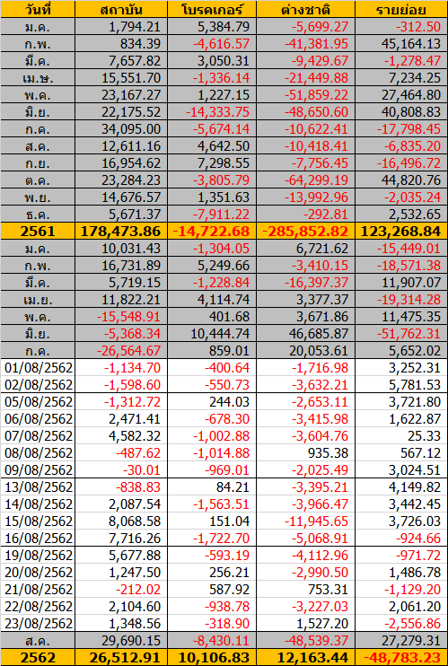 Sinthorn Summary 23/8/2562 : ต่างชาติซื้อสุทธิ 1,527.20 ลบ.