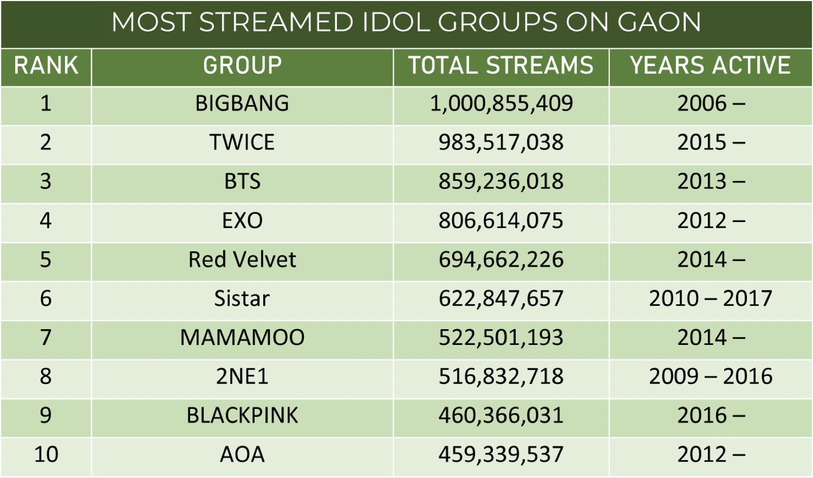 [K-POP] กลุ่มไอดอลที่มียอดสตรีมในกาออนมากที่สุด 10 อันดับ