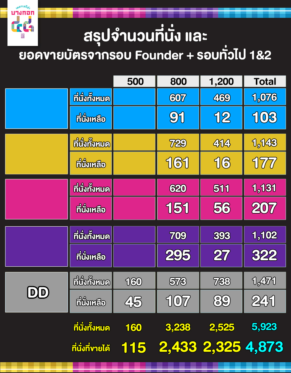 จำนวนที่นั่งของงานกีฬาสีที่เหลืออยู่ หลังจากรอบ Founder