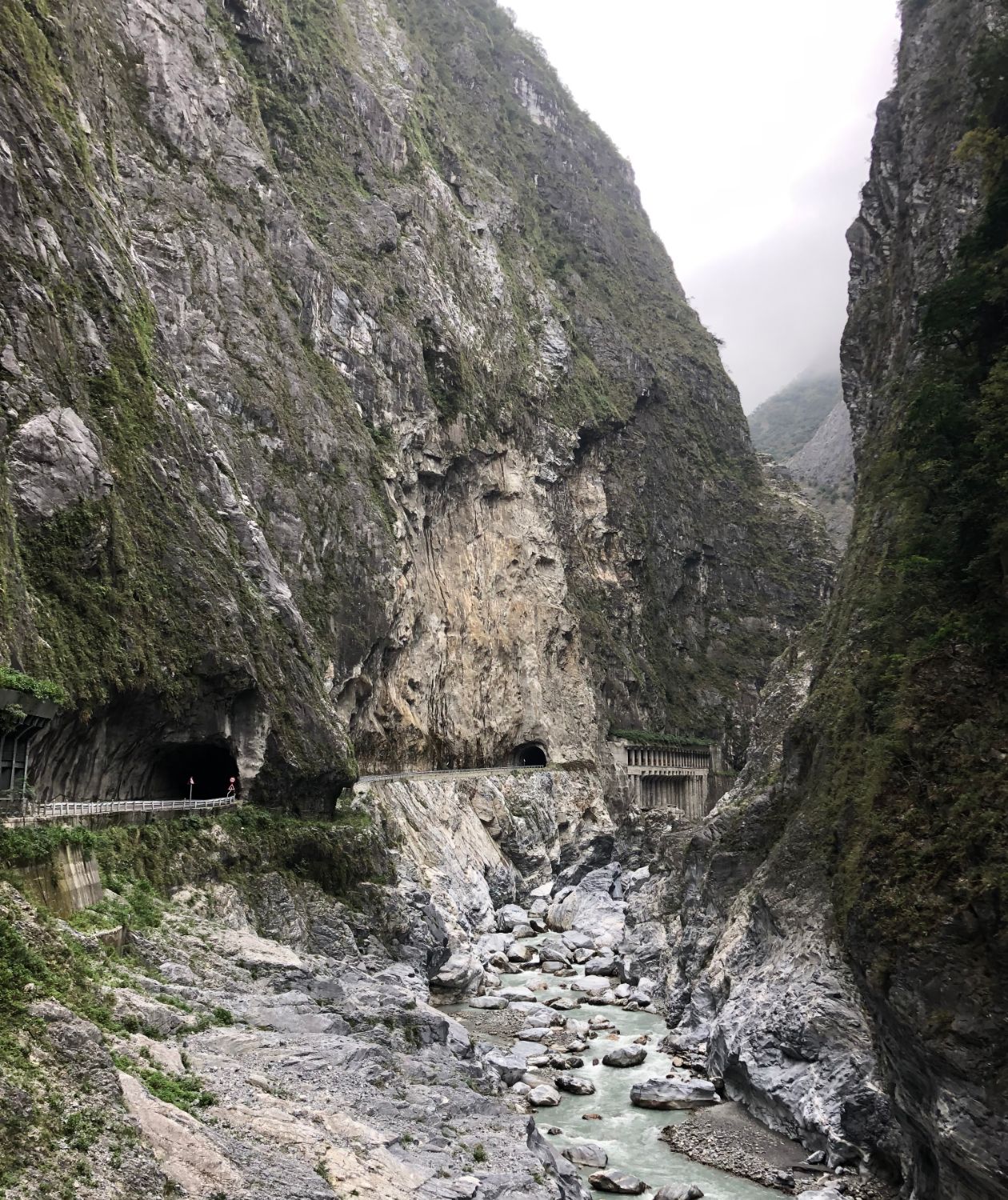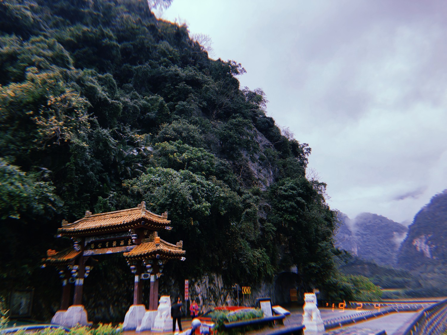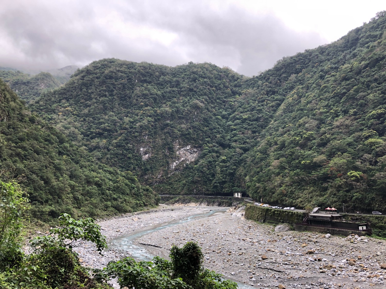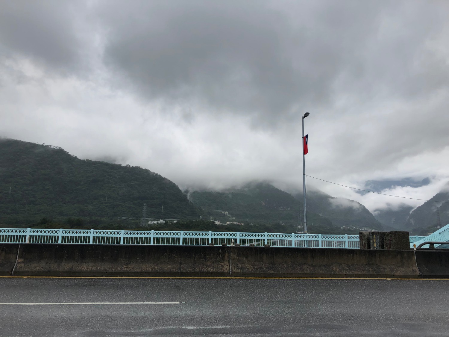 ฟ้าฝนก็ชั่งไม่เป็นใจต่อการถ่ายรูปกันบ้างเลย มืดมาเชียว ส่วนภูเขาที่เราเห็นนั่นคือ อุทยานแห่งชาติ ไทหลู่เกอ (太魯閣) หรือ Taroko ซึ่งวันพรุ่งนี้เราจะไปลุยกันครับ