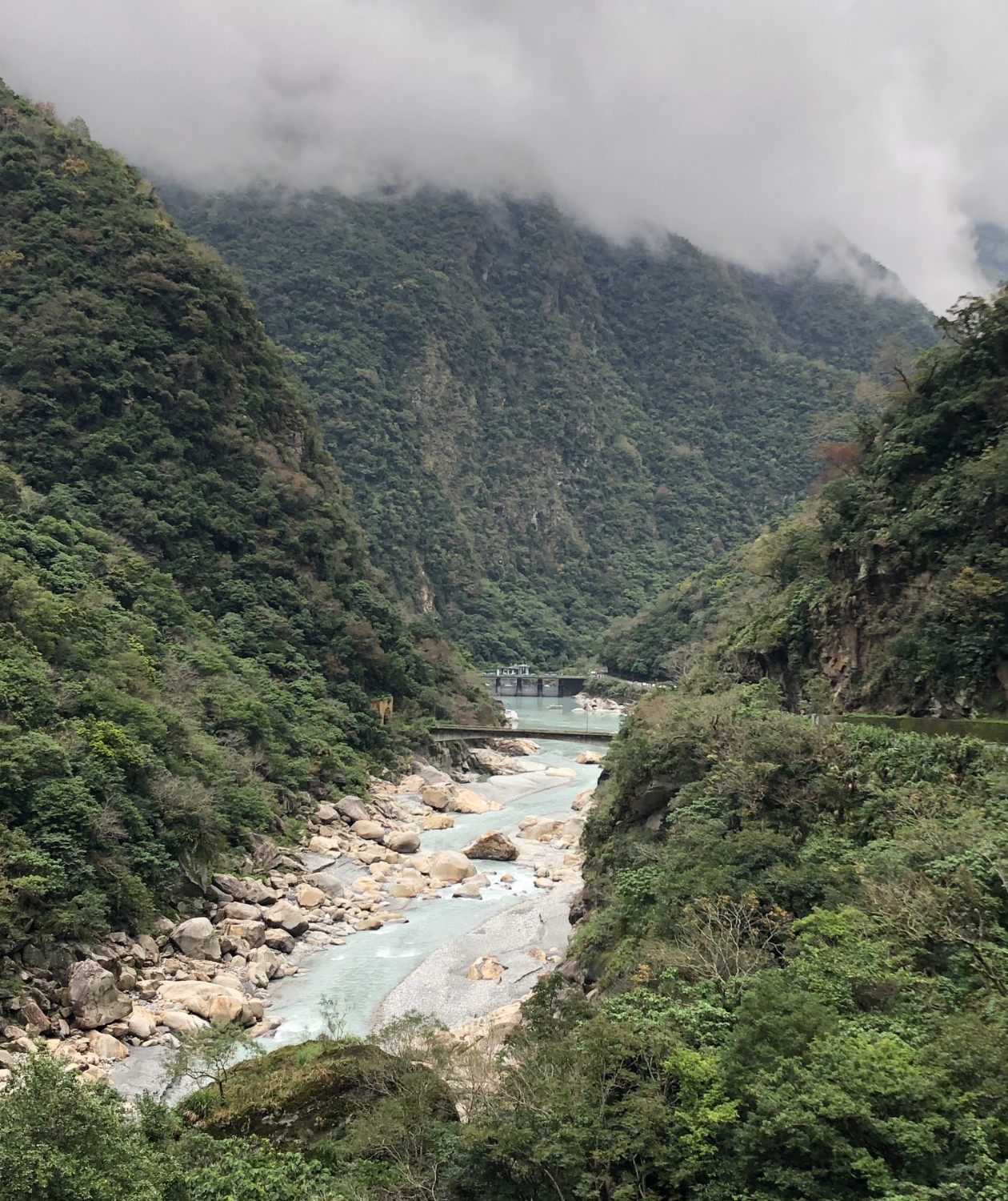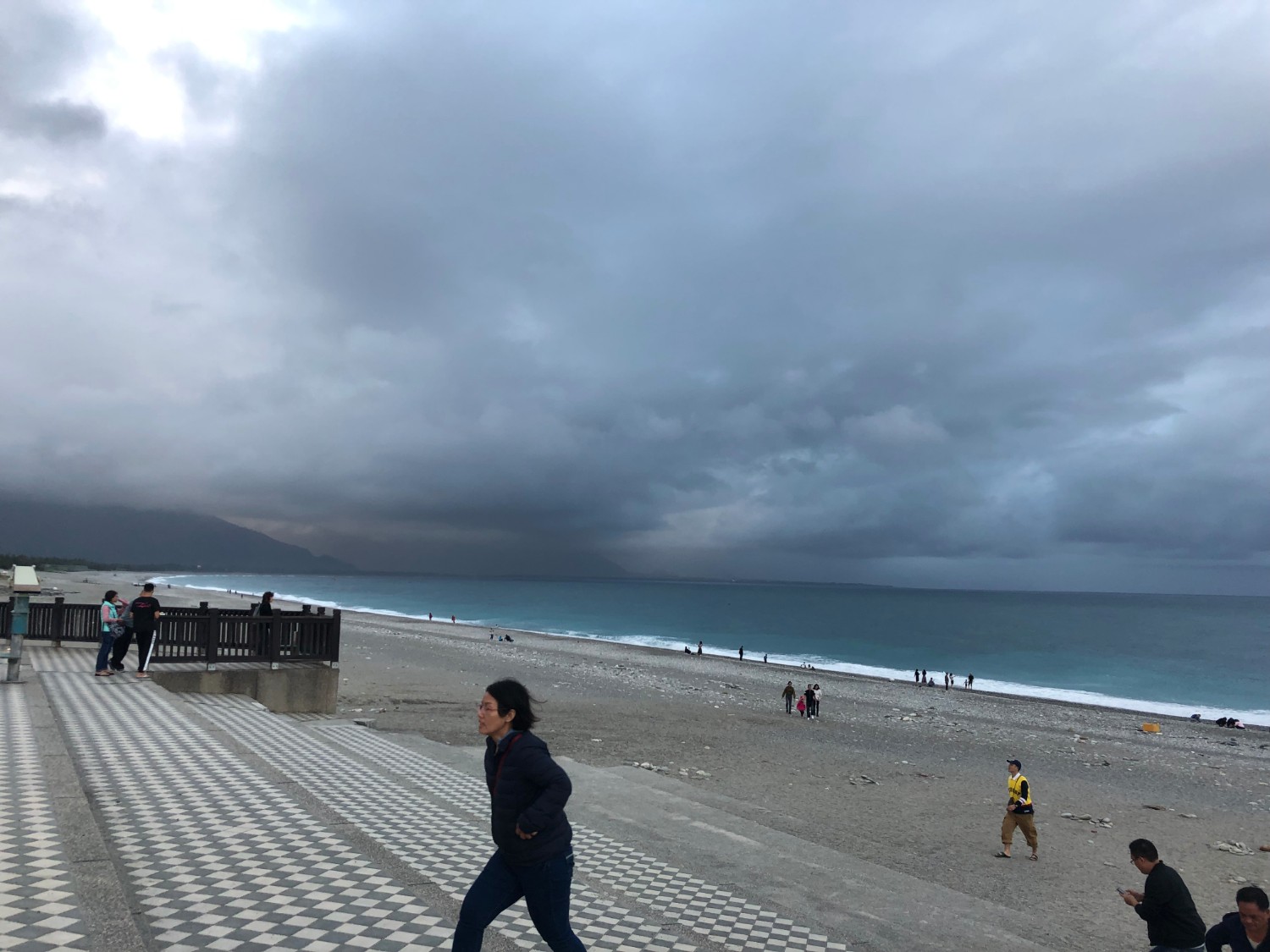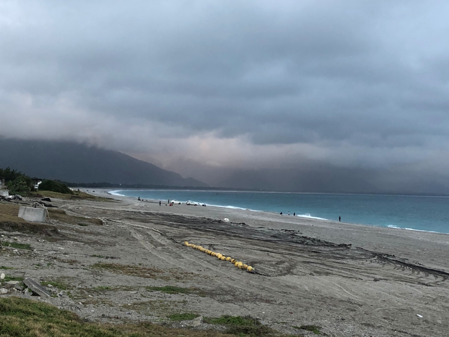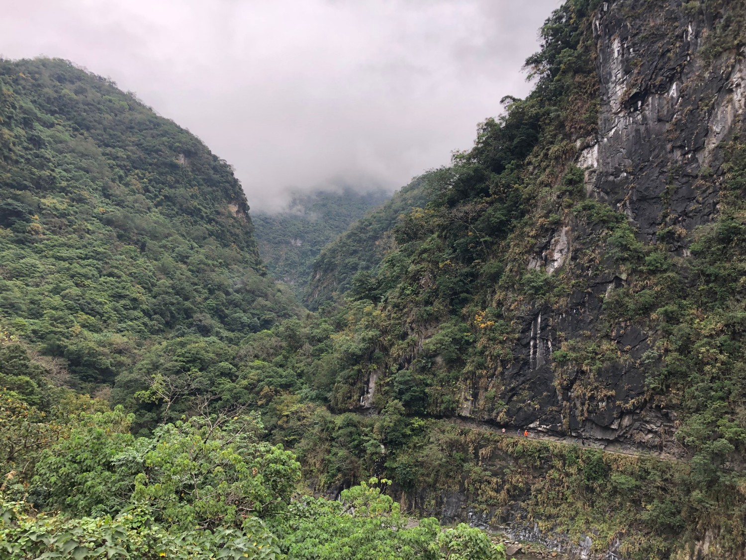 ฟ้าฝนก็ชั่งไม่เป็นใจต่อการถ่ายรูปกันบ้างเลย มืดมาเชียว ส่วนภูเขาที่เราเห็นนั่นคือ อุทยานแห่งชาติ ไทหลู่เกอ (太魯閣) หรือ Taroko ซึ่งวันพรุ่งนี้เราจะไปลุยกันครับ